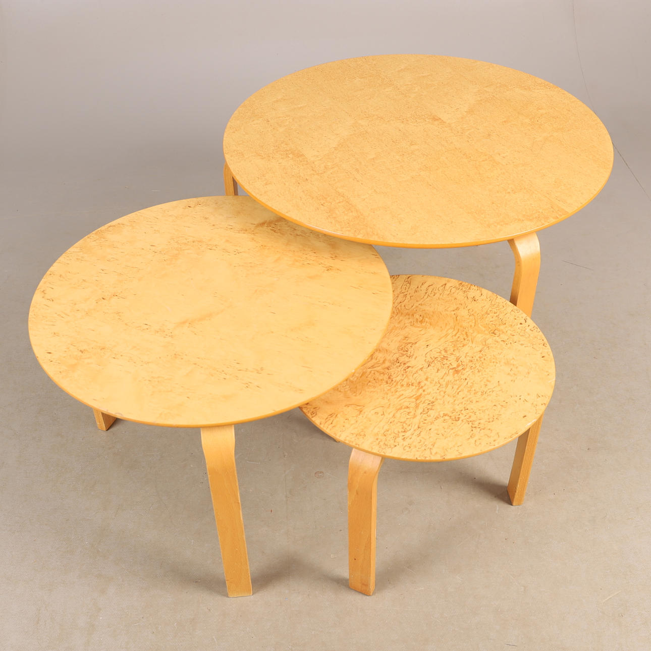 3347270. 3-teiliger Couchtisch, Masurbirke/Buche.