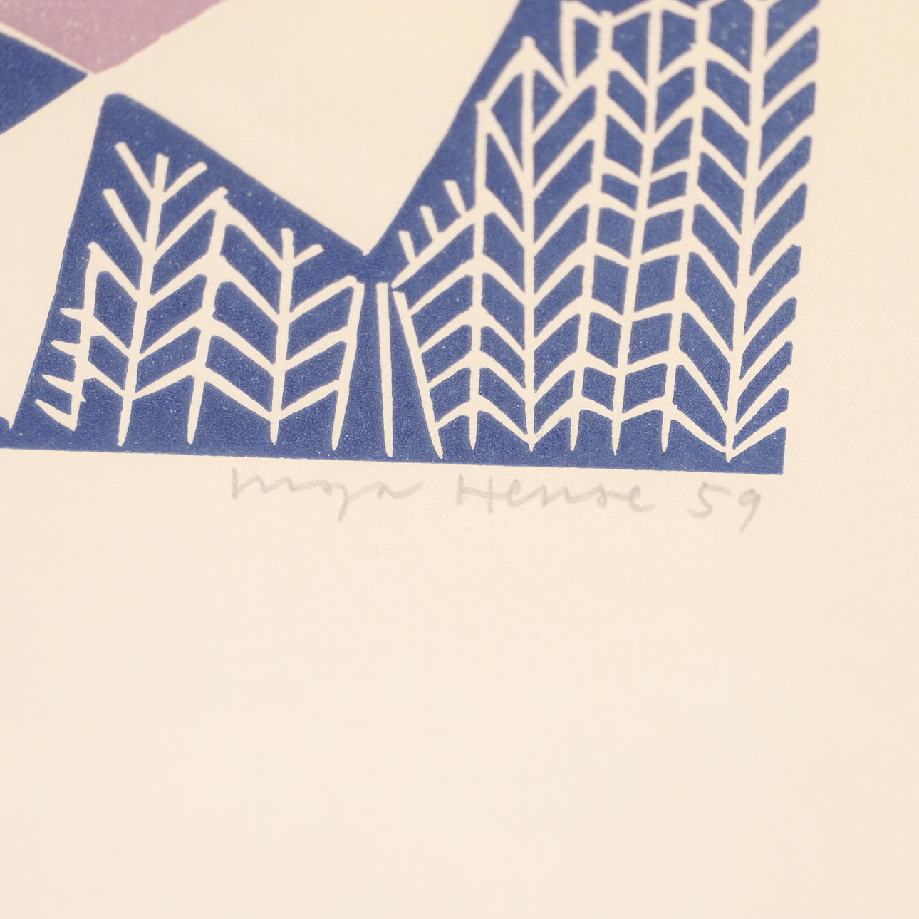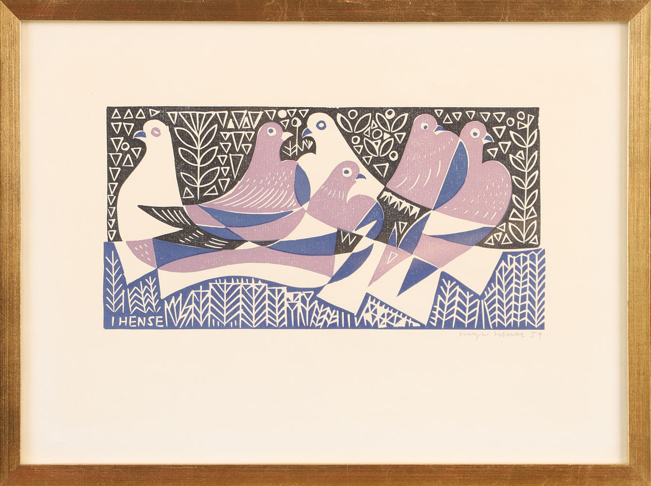 INGA HENSE. Tauben, Farblithografie, signiert 59.