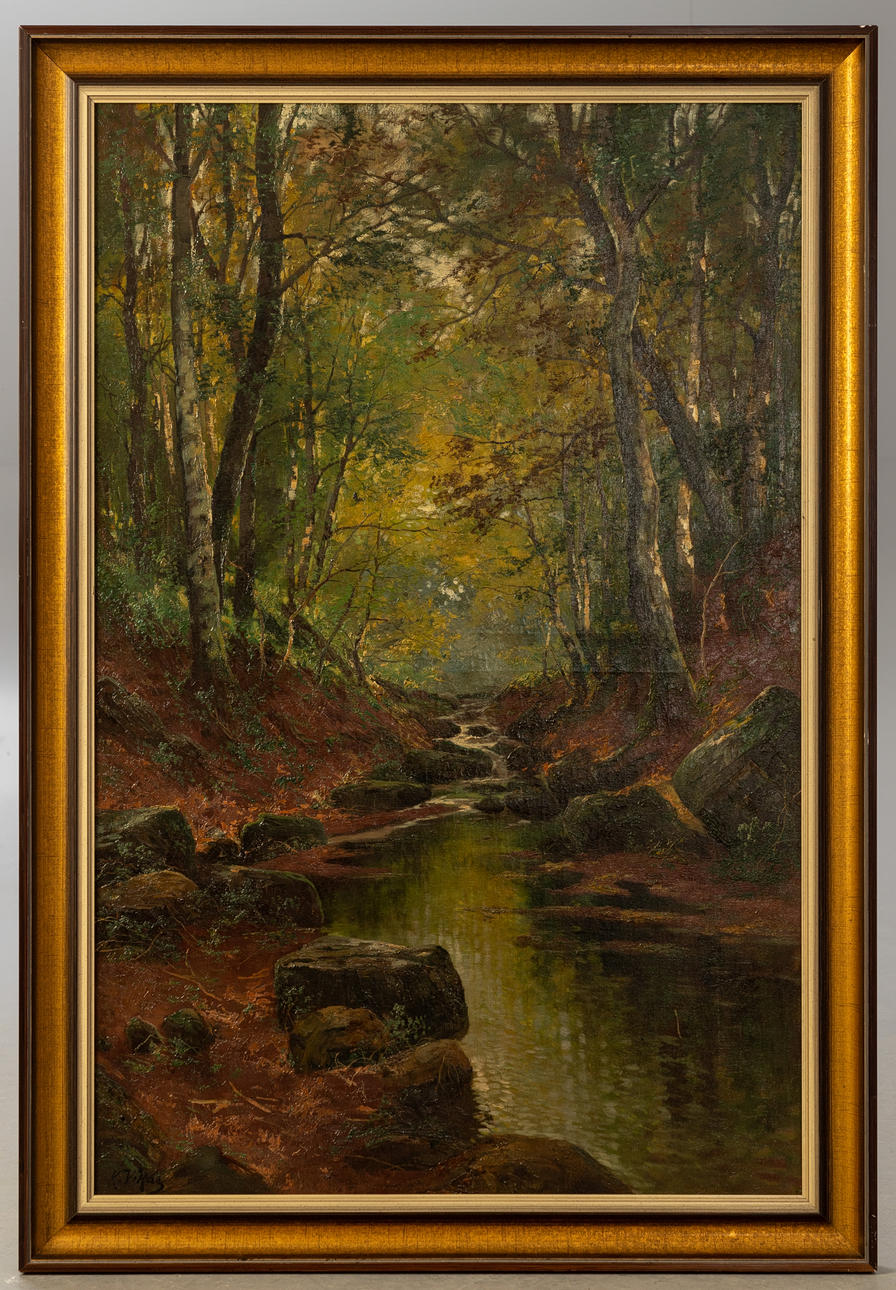 Karl Vikas (1875-1934), Am Waldbach, Öl auf Leinwand, signiert, rückseitig auf dem Keilrahmen betitelt und mit 'No 961' bezeichnet, ca. 105 x 68,5 cm, mit Rahmen ca. 117 x 80 cm.