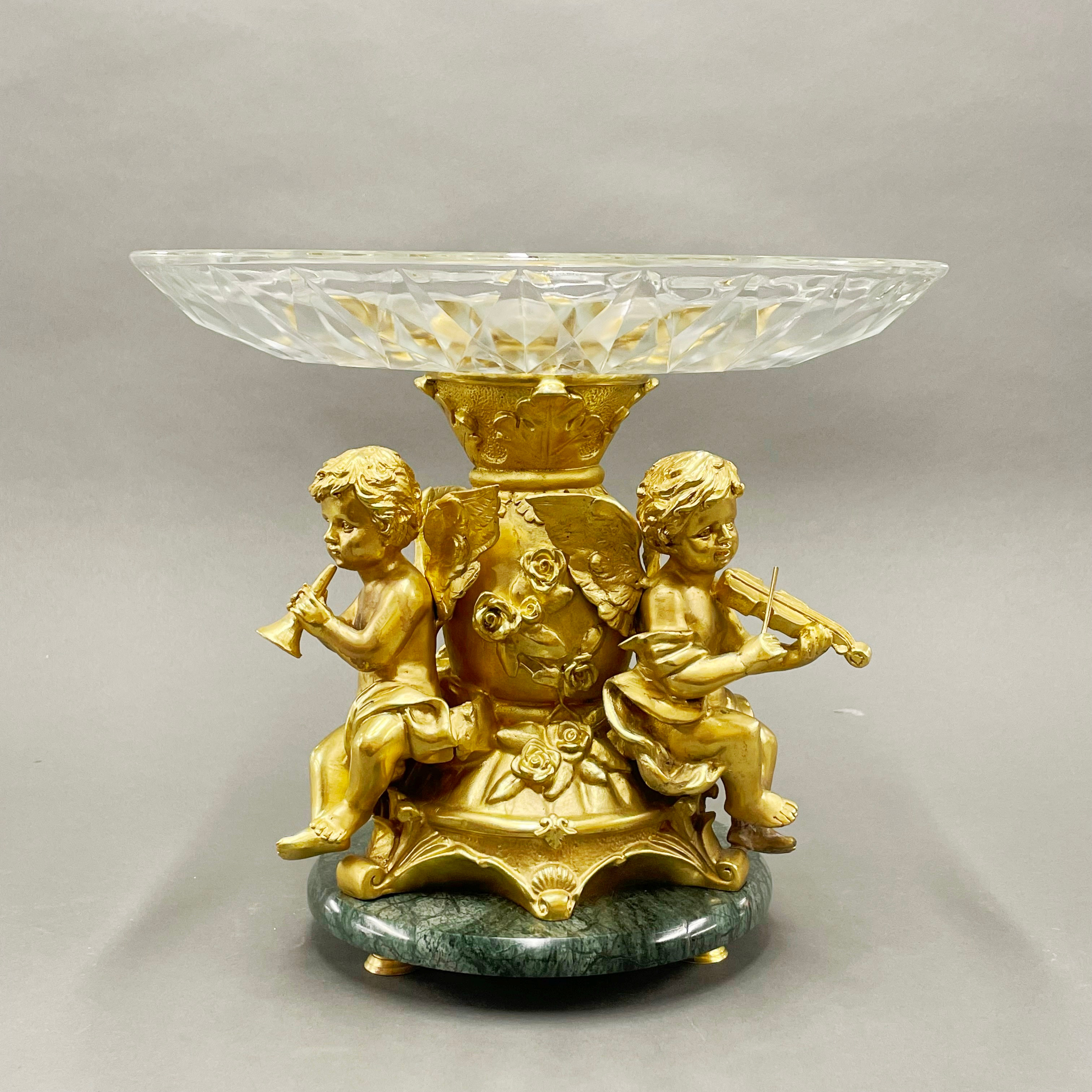 3357021. TAFELAUFSATZ AUS MARMOR, BRONZE UND GLAS.