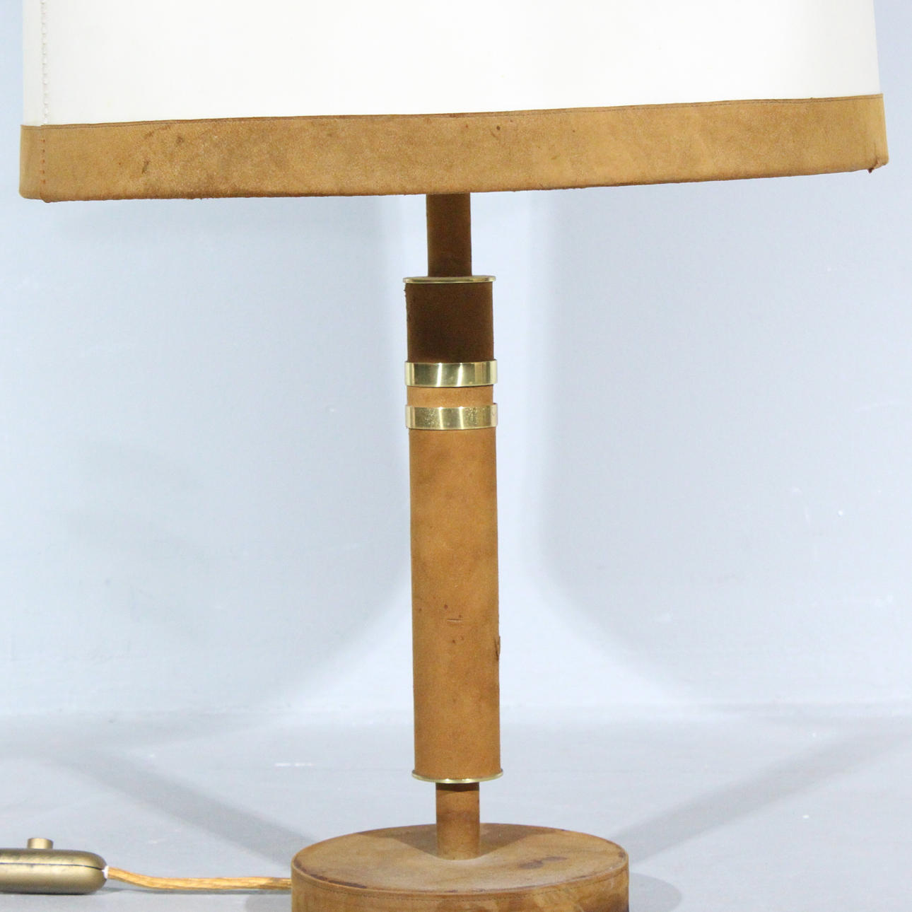 3357084. CHARLOTTE WAVER. Tischlampe, Leder, 1970er.