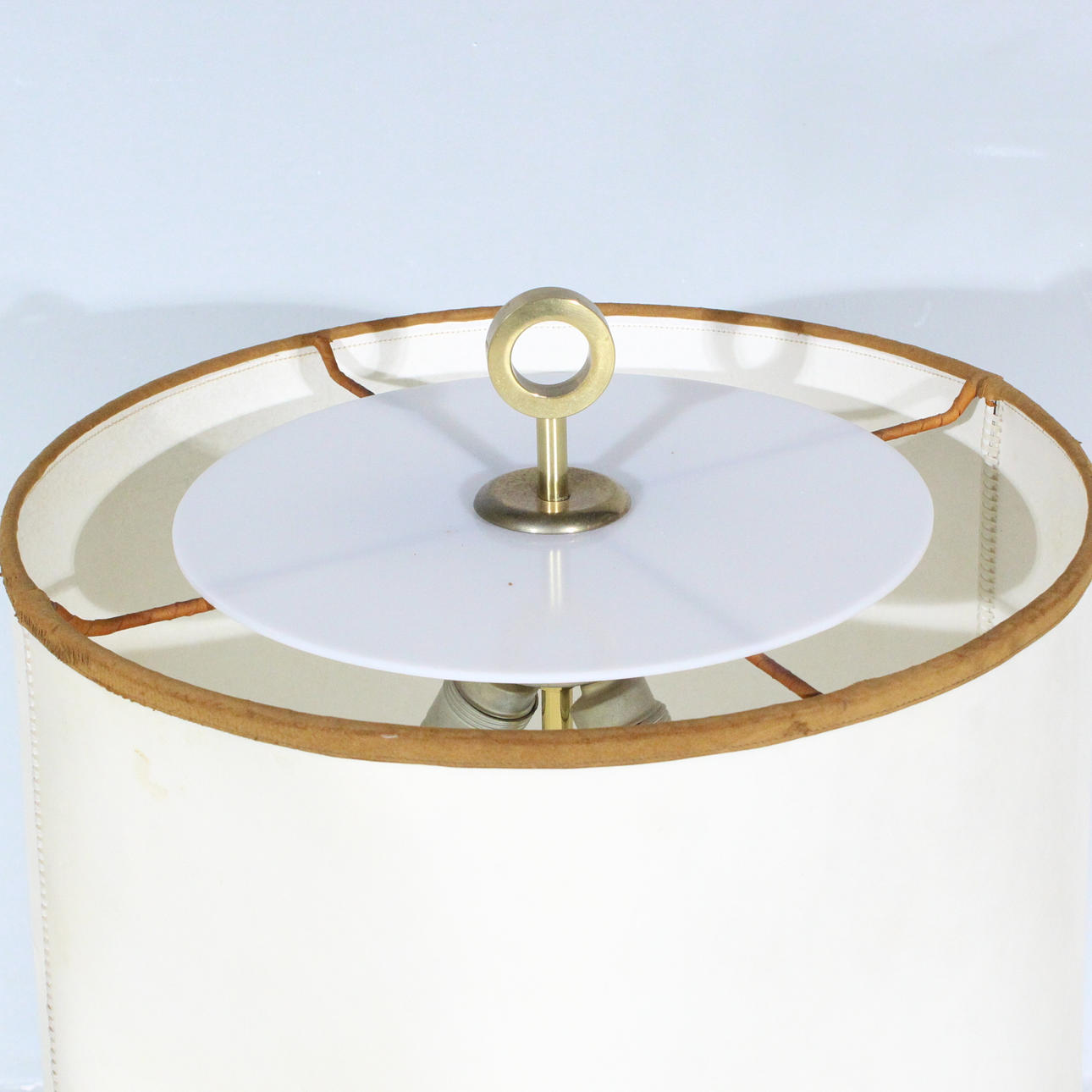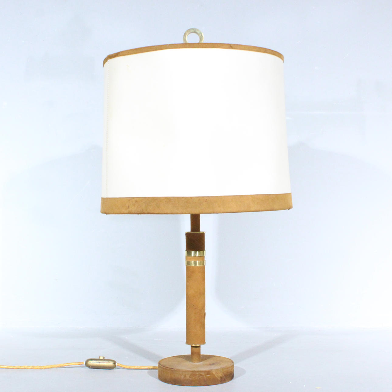 Charlotte Waver, Tischlampe, Leder,Ziegenhautschirm. 1970er
