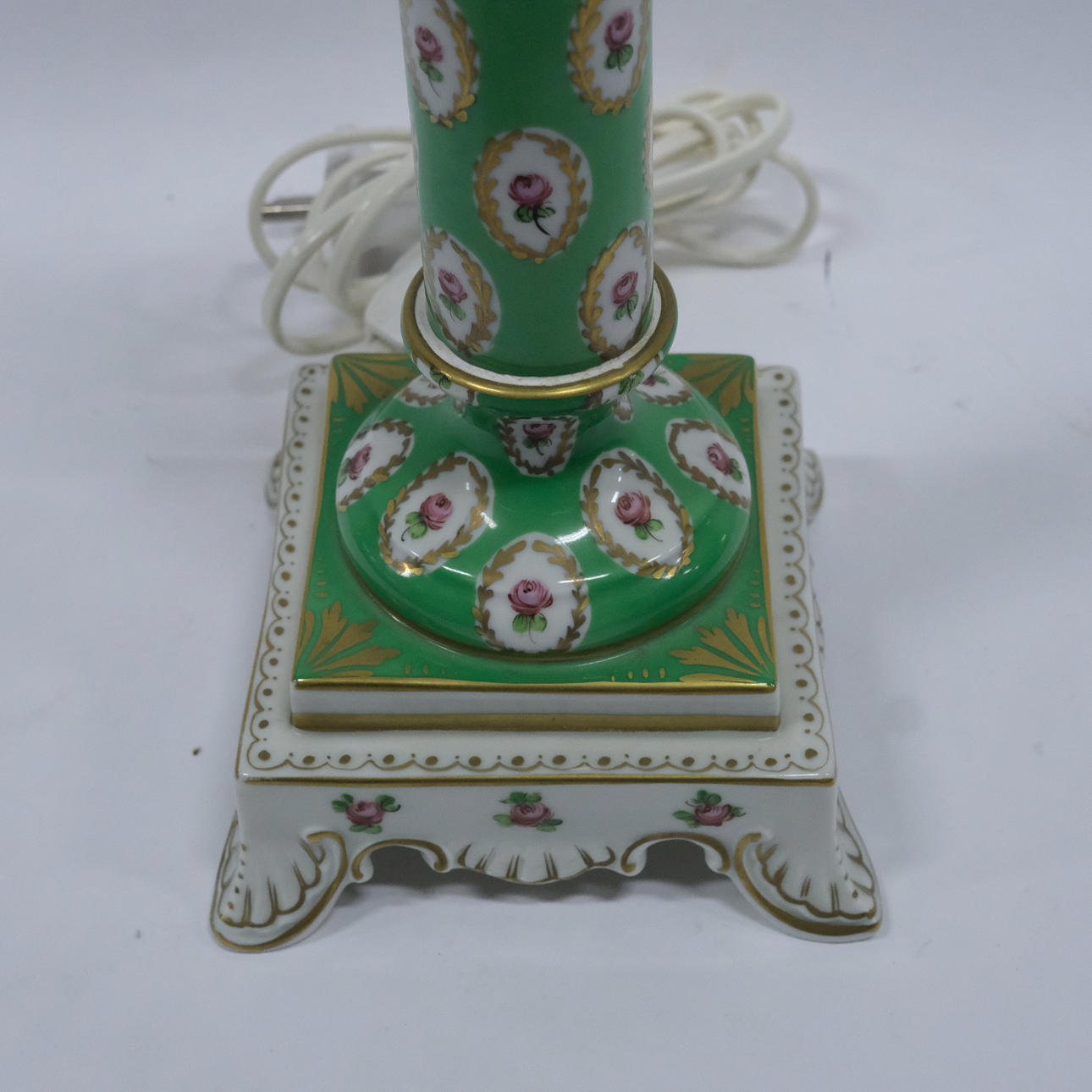 Lampensockel aus Porzellan, Blumenmotiv, vergoldetes Dekor, Höhe 39 cm.