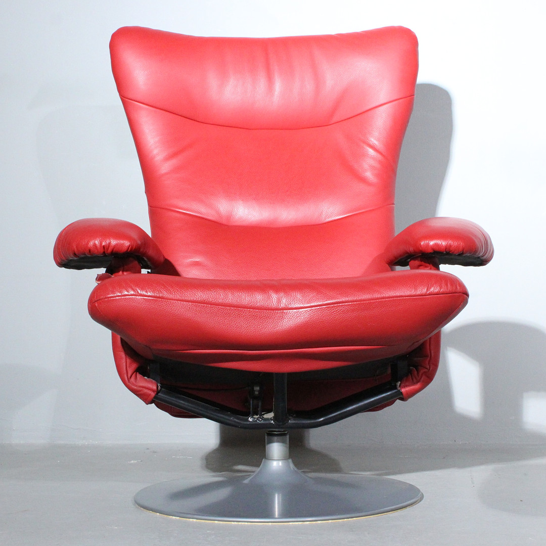 3358547. VERIKON. Roter Sessel + Ottomane, Dänemark.