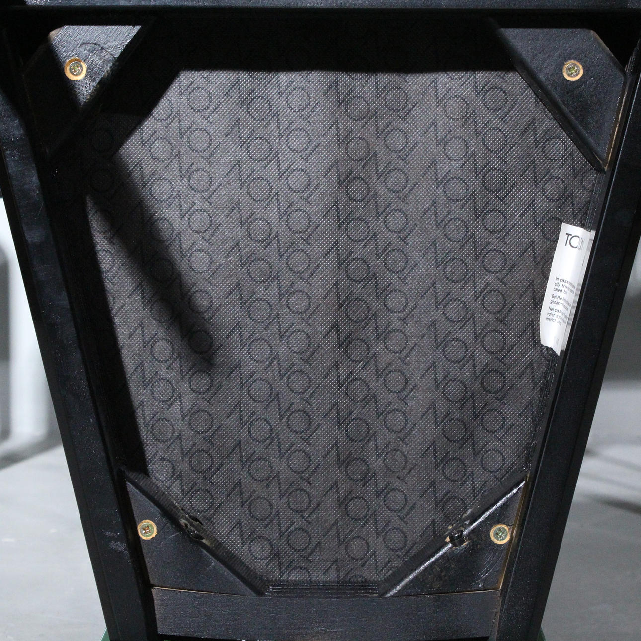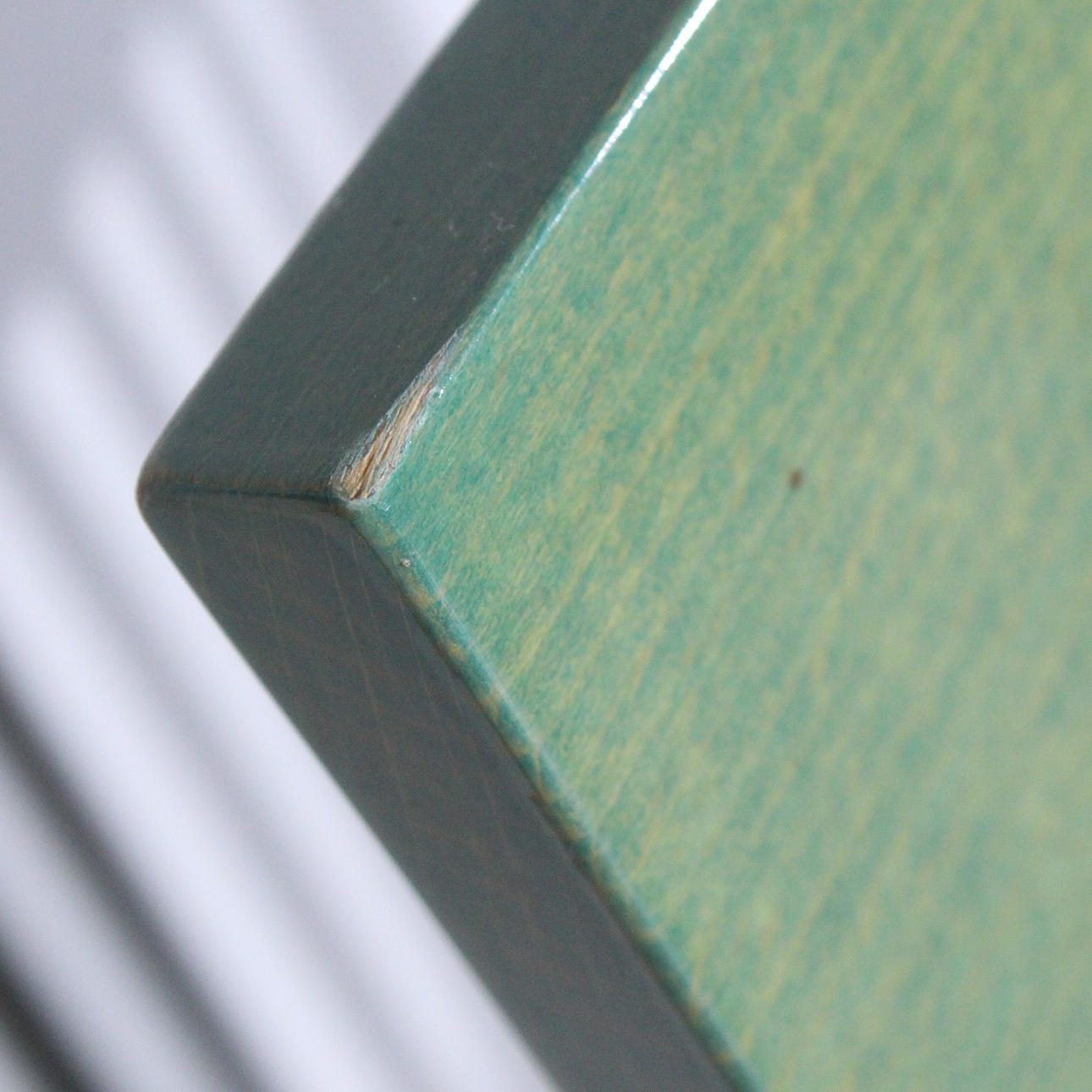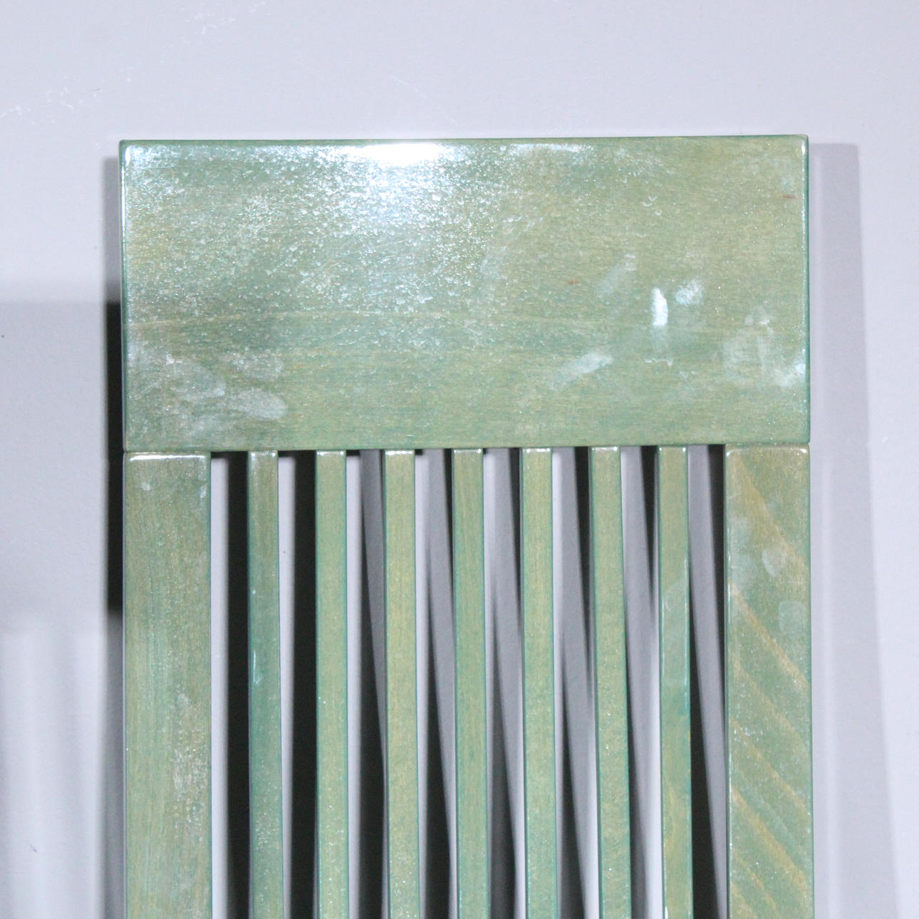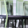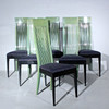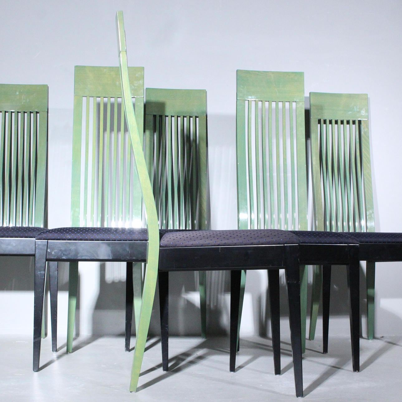 Tonon, Italien, sechs Stühle / Esszimmerstühle, Holz, grün lackiert, aufgepolsterte Sitzflächen, unterseitig mit Herstelleretikett versehen,