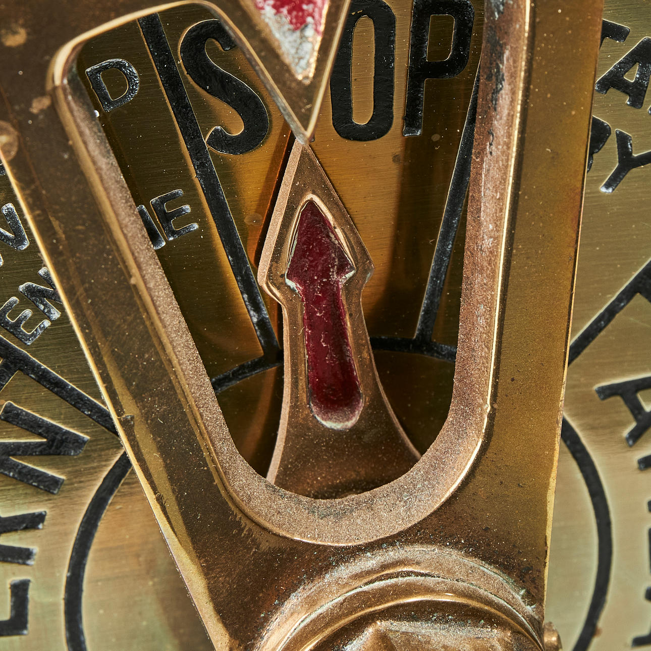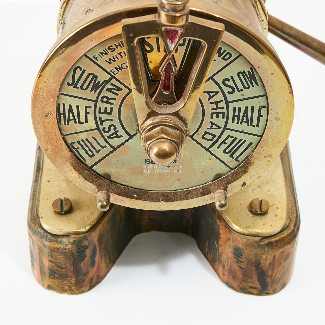 Doppelseitiger Maschinentelegraph aus der Mitte des 20. Jahrhunderts, Bendix Aviation Corporation, Marine Division, Brooklyn, New York, Messing, Scheibe mit der Aufschrift CB-13298-5A.