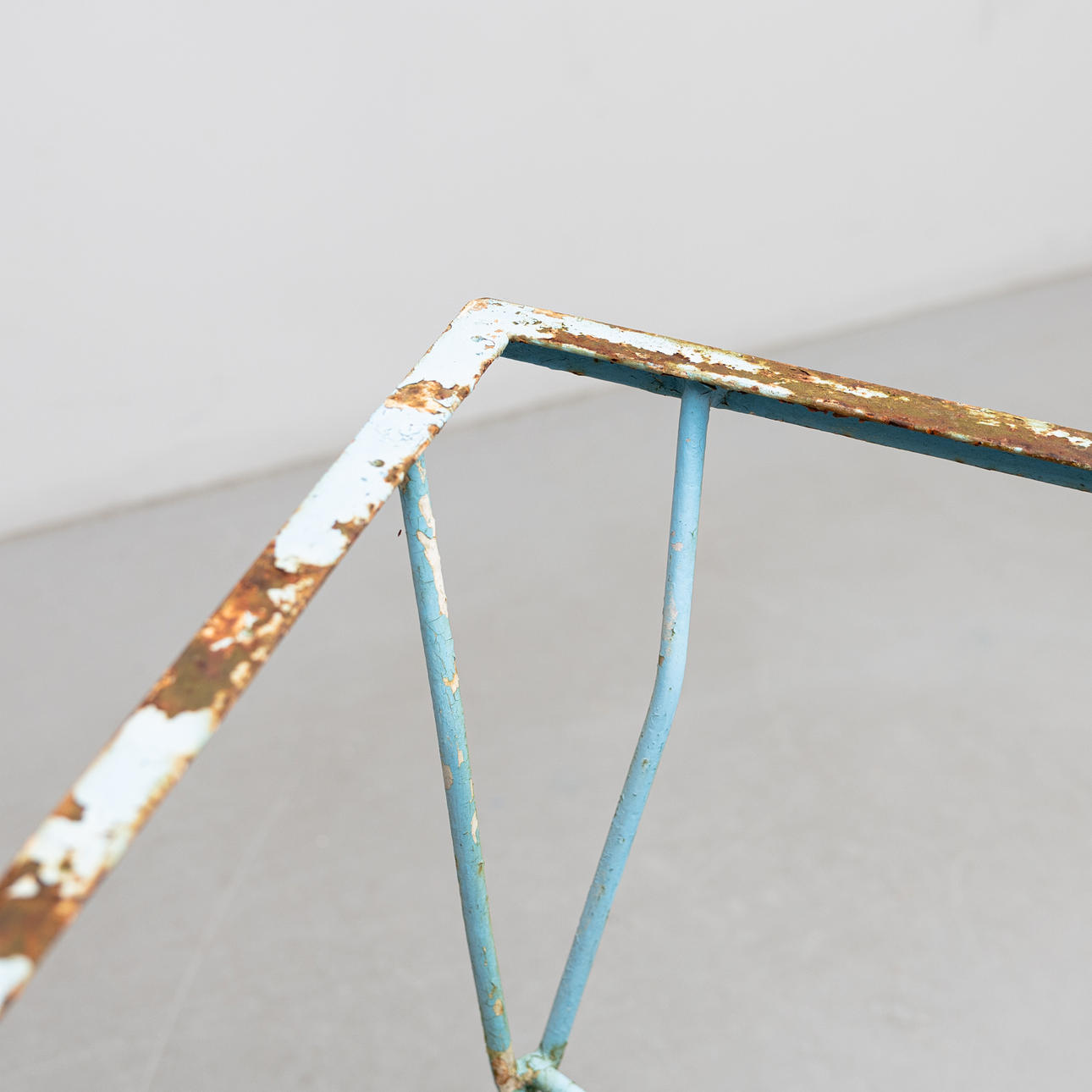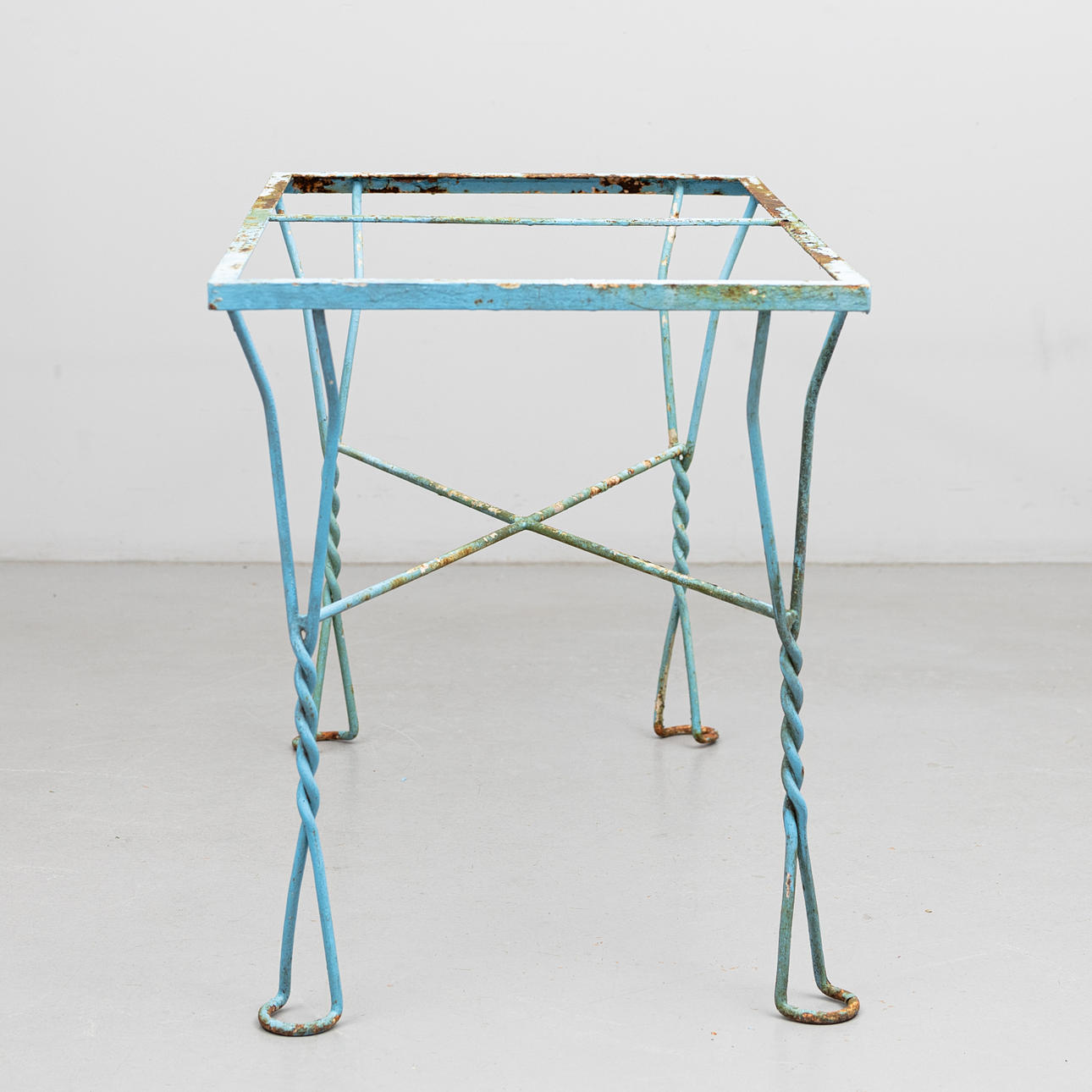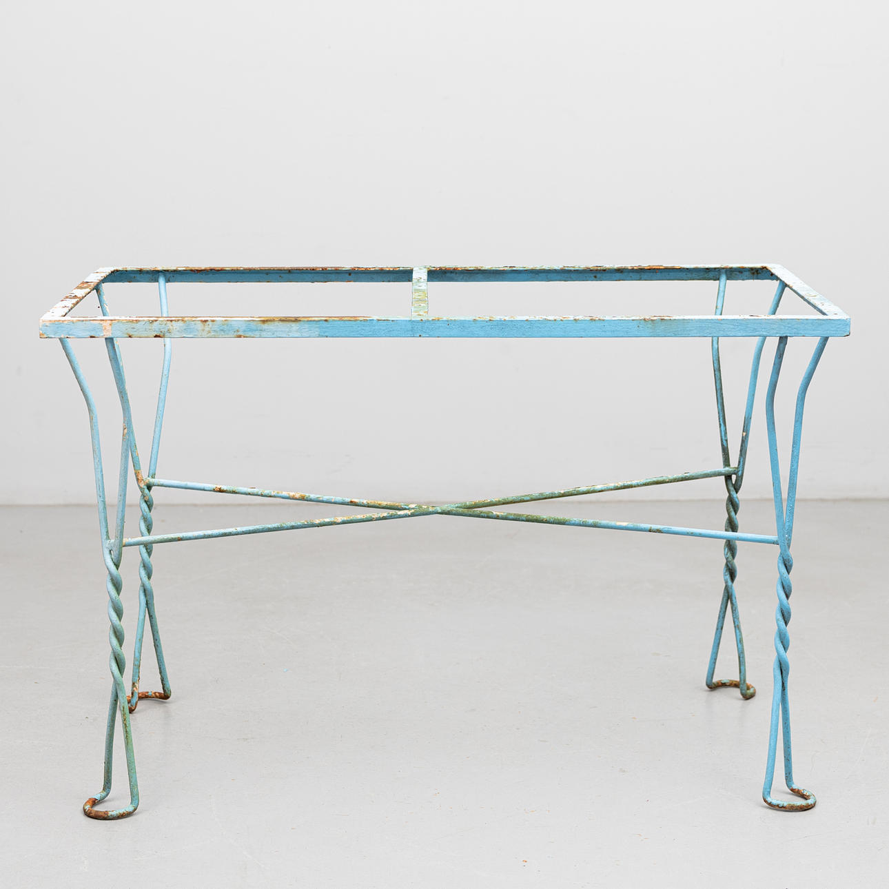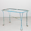 Blau bemalt, Länge ca. 110, Tiefe 60,5 und Höhe 72 cm.