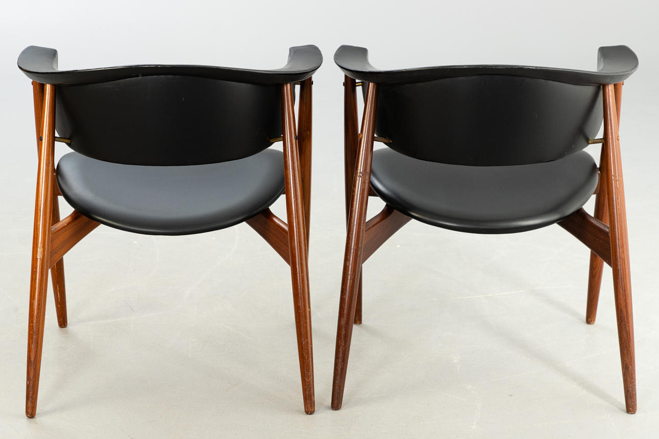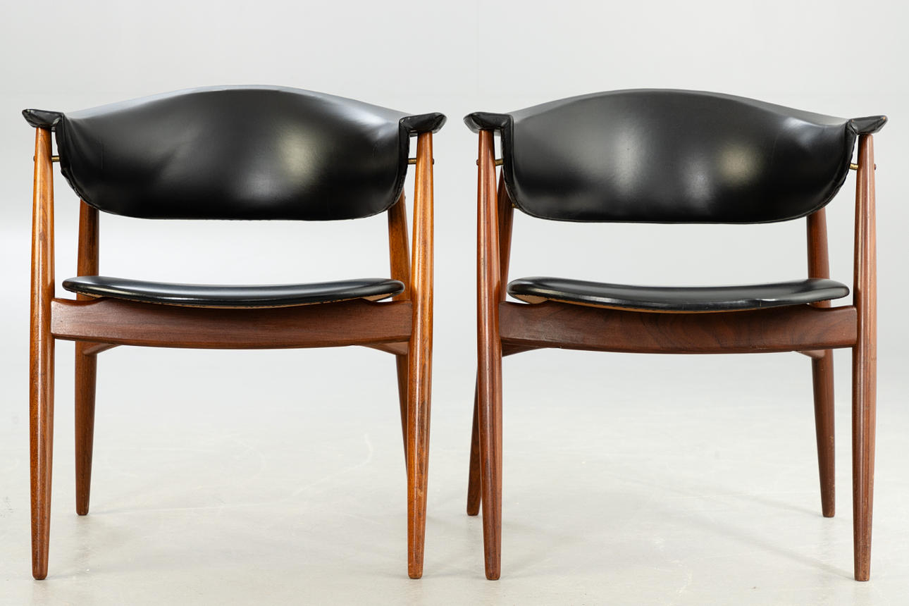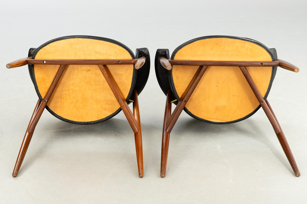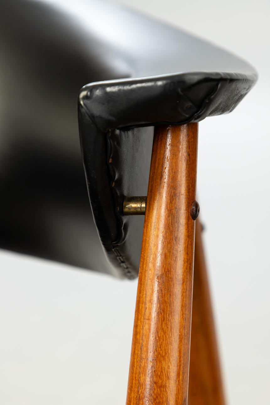 Entwurf: 1956, Norwegen. Teakholz, Messing, schwarzes Kunstleder.