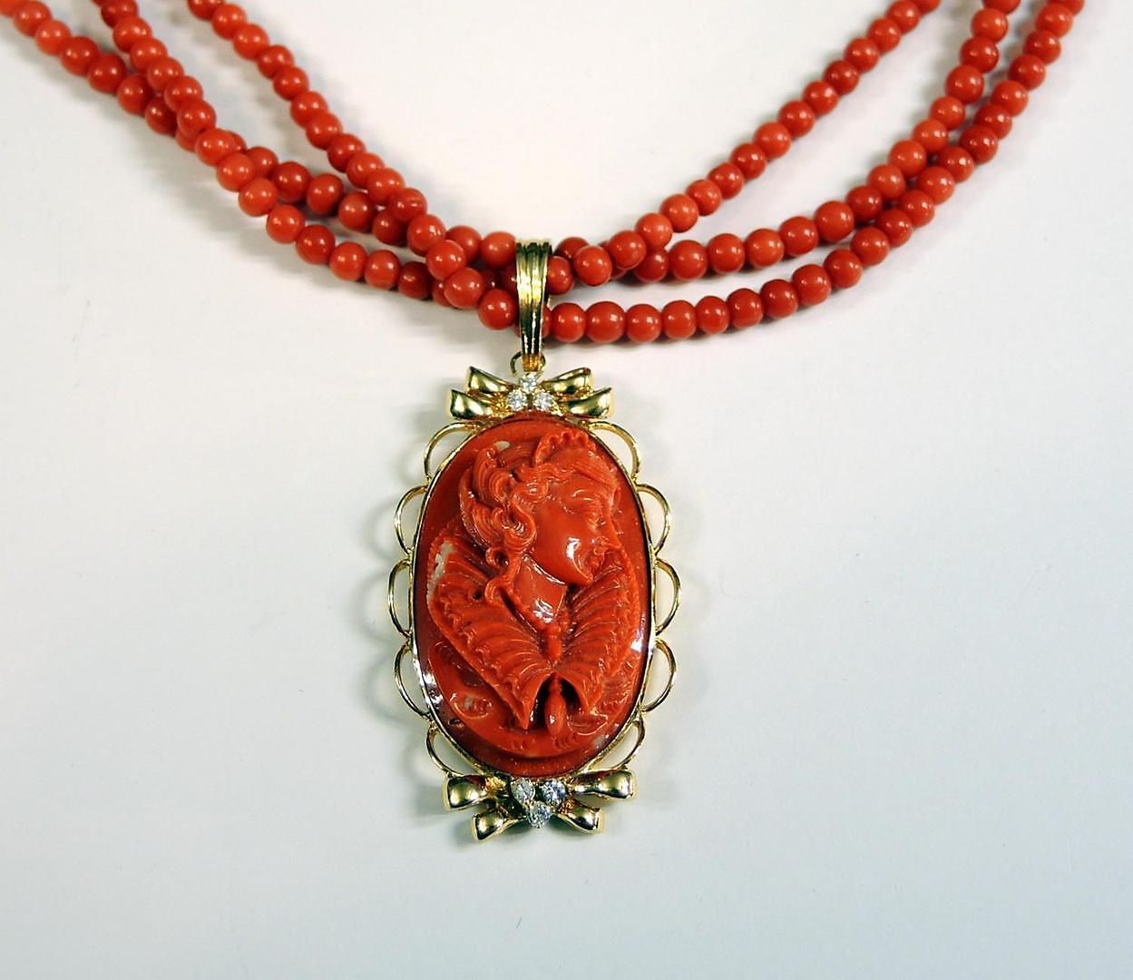 337525. DREIREIHIGES KORALLEN COLLIER.