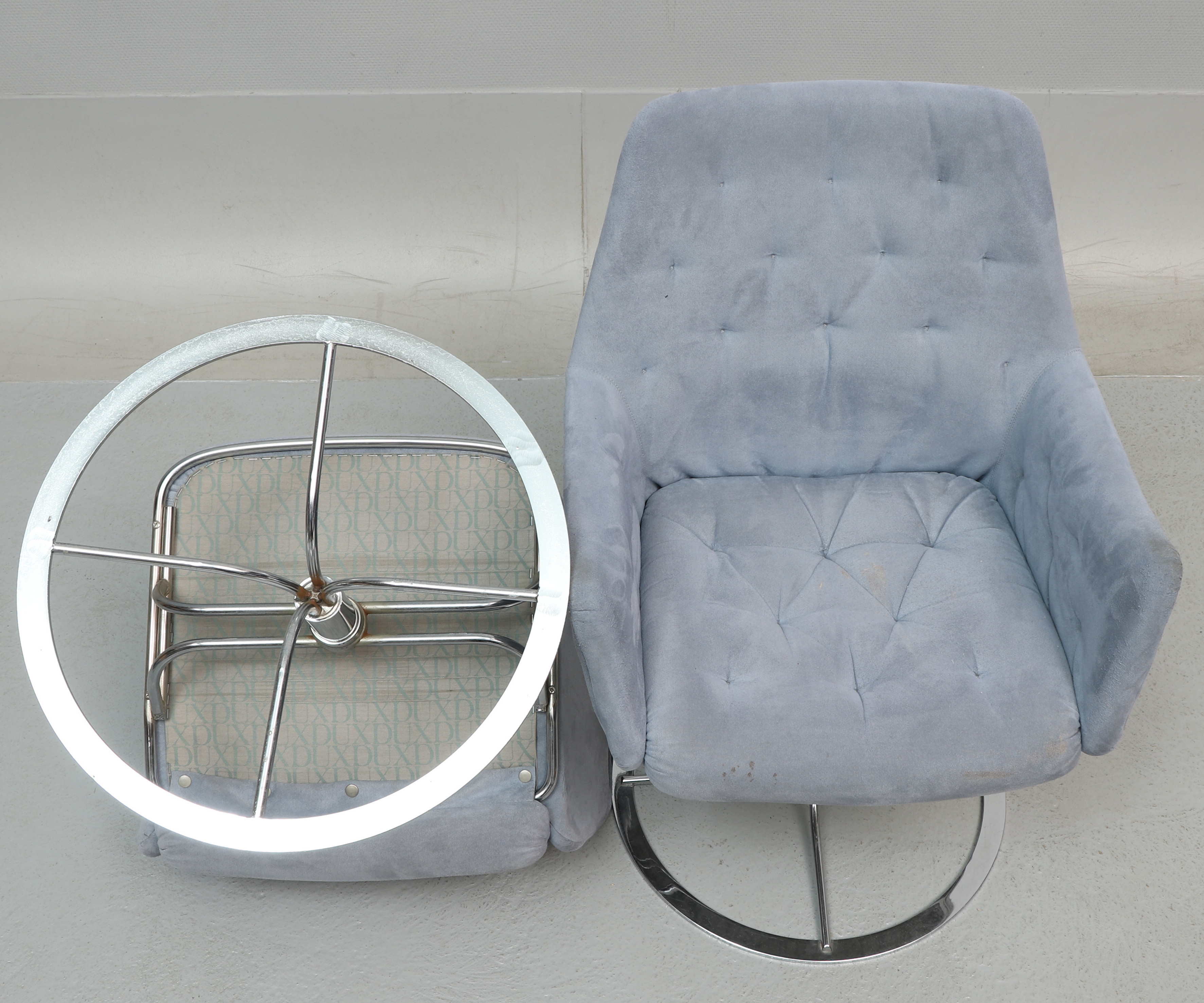 3377088. BRUNO MATHSSON. Sessel, ein Paar, „Master“, blaues Veloursleder, Dux.