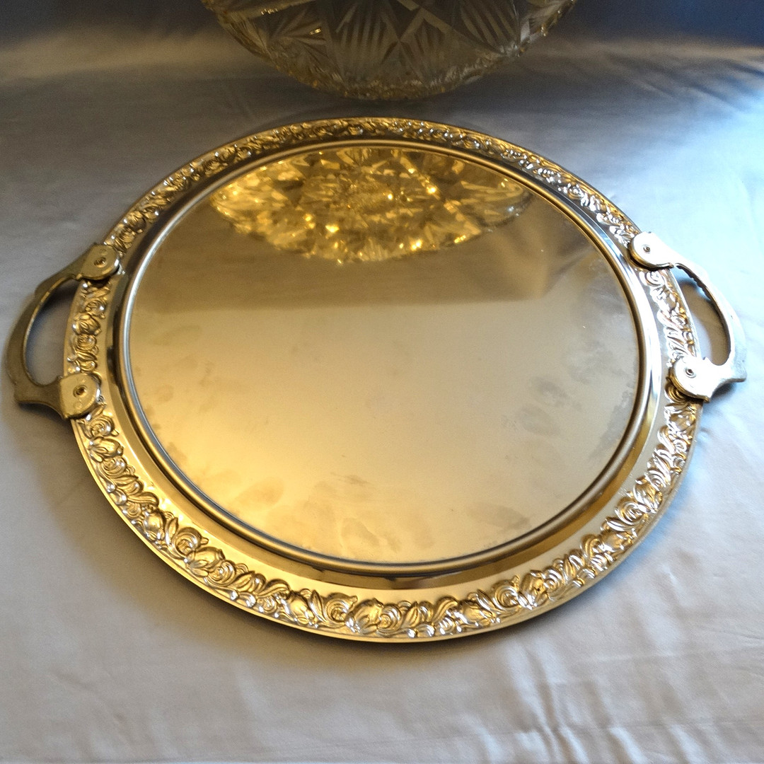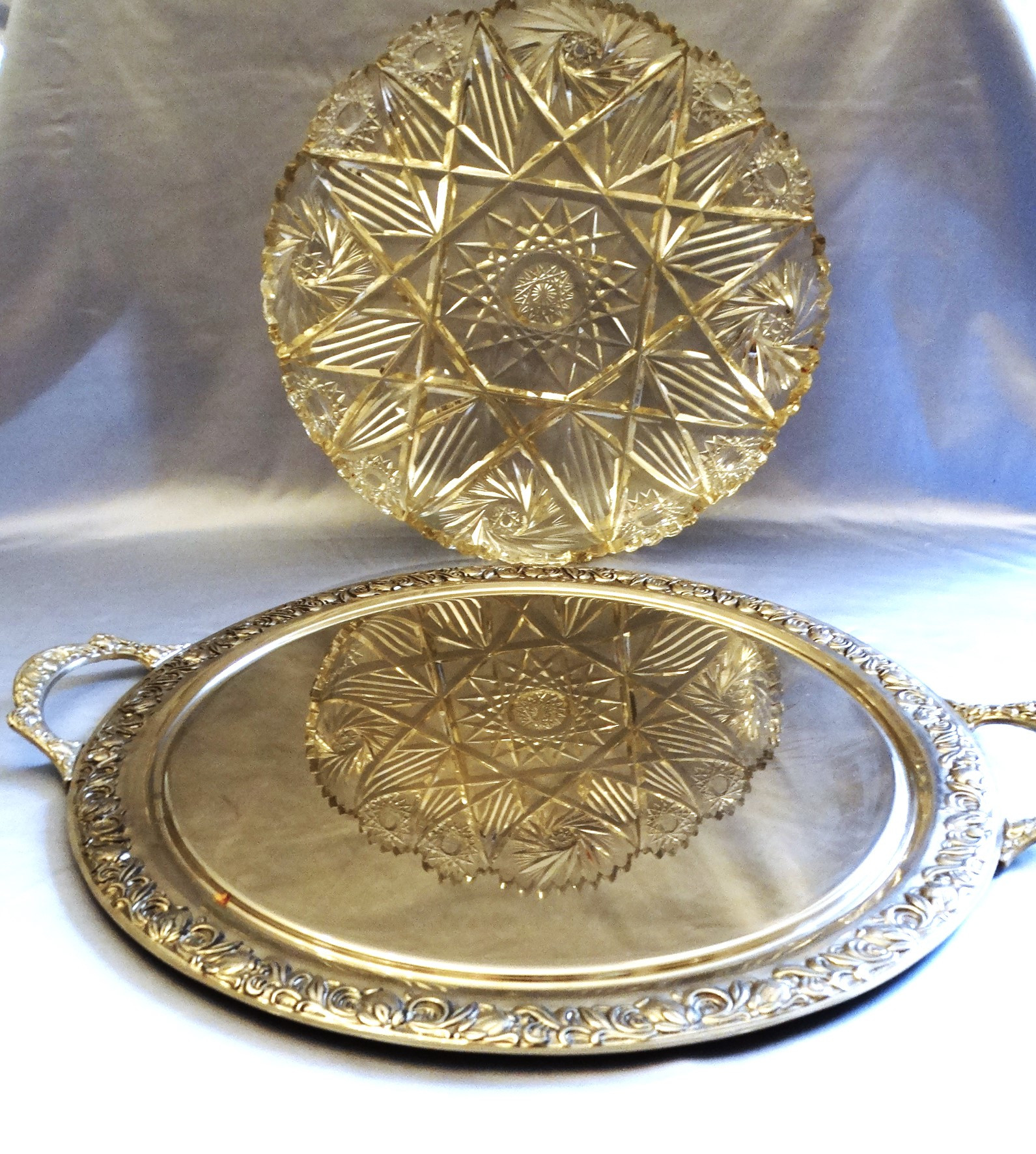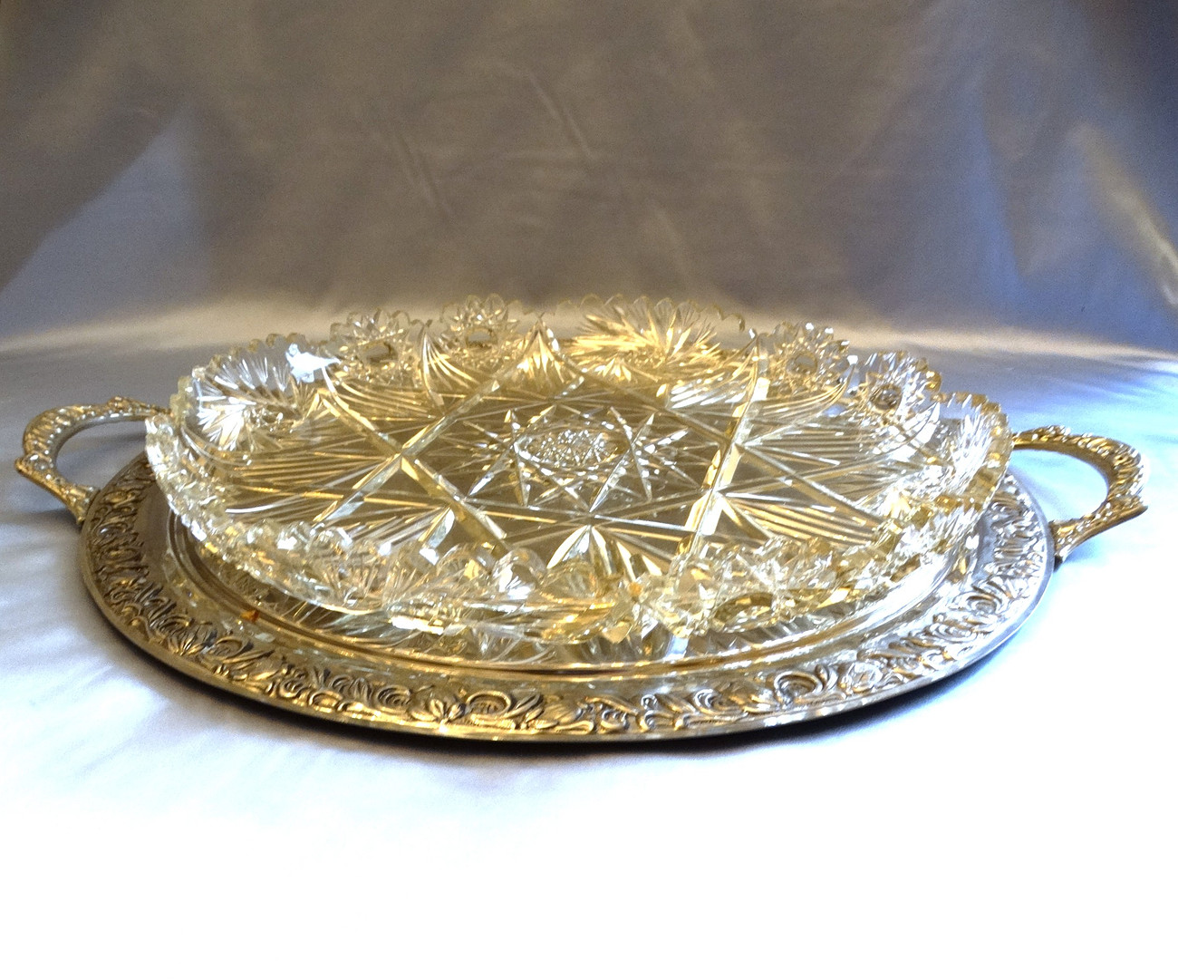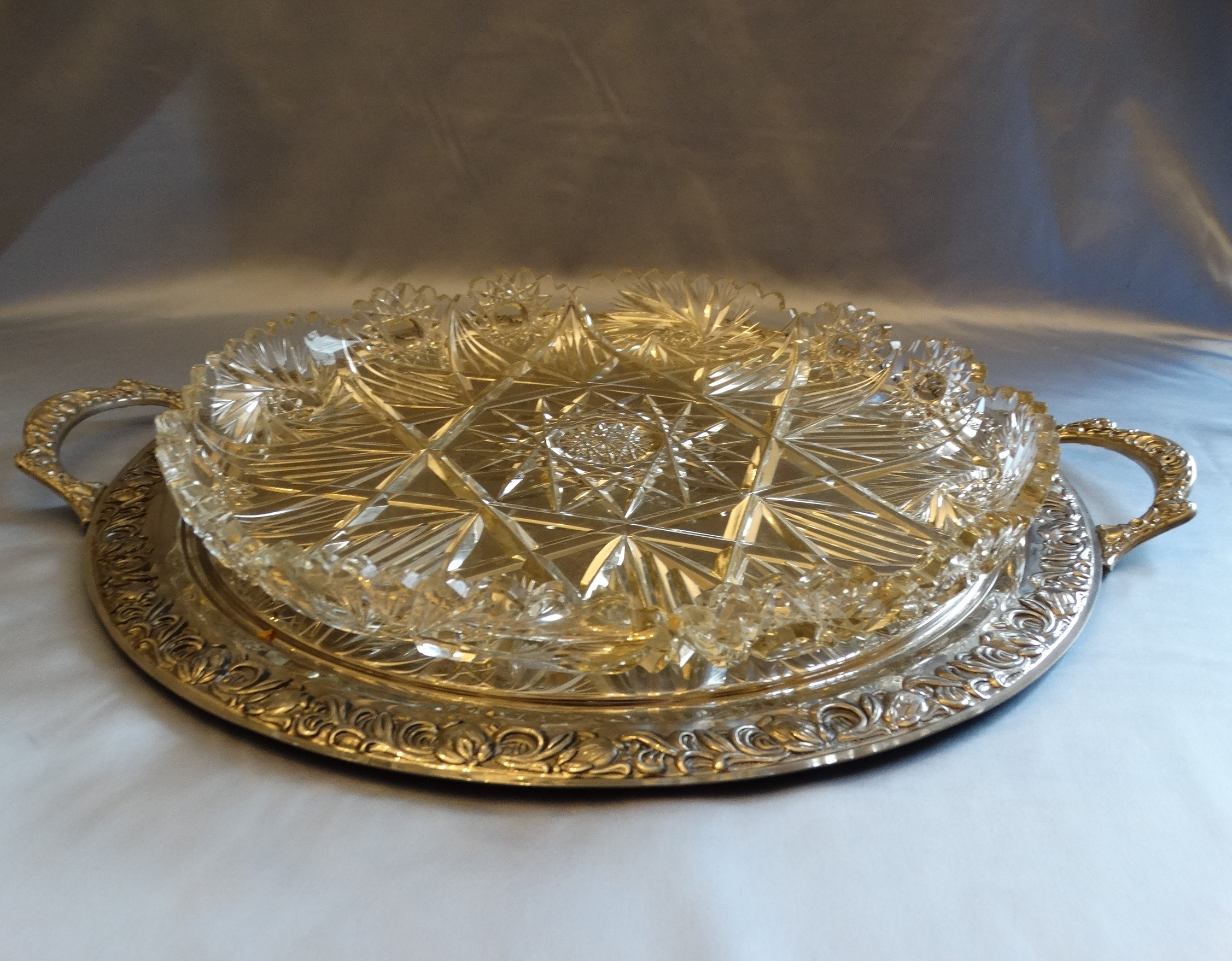 3377830. KRISTALLGLAS SCHALE mit METALLTABLETT.