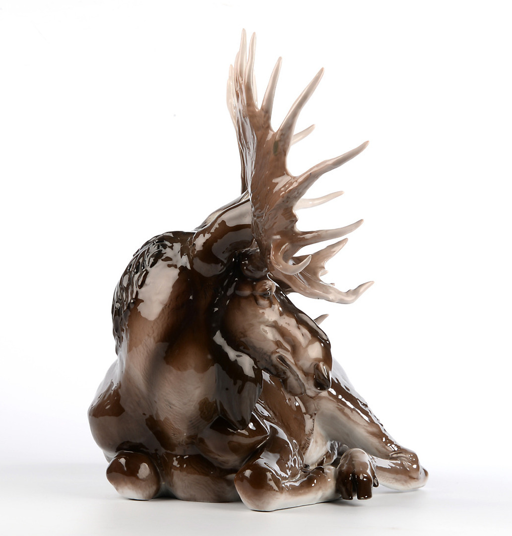 338017. THEODOR KÄRNER. LIEGENDER ELCH. Rosenthal, Selb. Um 1940.