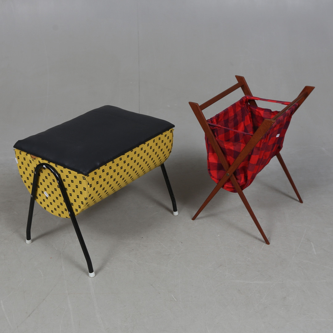3382940. Ein Strickkorb und ein Nähtisch, 1950/60er Jahre.