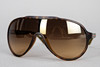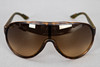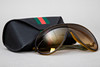 Sonnenbrille von GUCCI aus braunem Kunststoff in Hornoptik. Schutzbeutel und Etui. Beschriftung im linken Bügel: GG 1004/S 7914D 120. Beschriftung im rechten Bügel: GUCCI Made in Italy. CE X5 3.