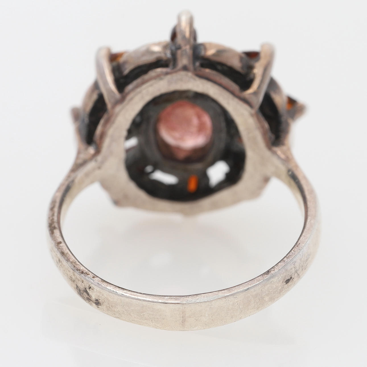 Granate, Erdbeerquarz und Markasite. Größe ca. 16,75/53. Breite ca. 2,5-17,5 mm. Gewicht ca. 5,4 Gramm.