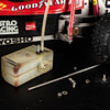 Motor, Auspuffanlage und Tank sind an der Seite enthalten.