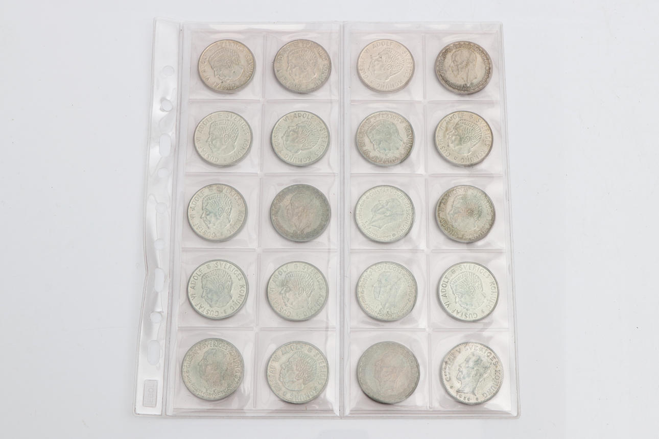 Schwedische Silbermünzen des 20. Jahrhunderts und eine amerikanische Münze.