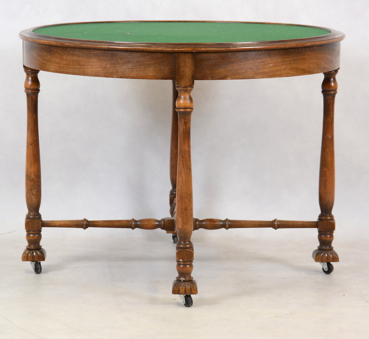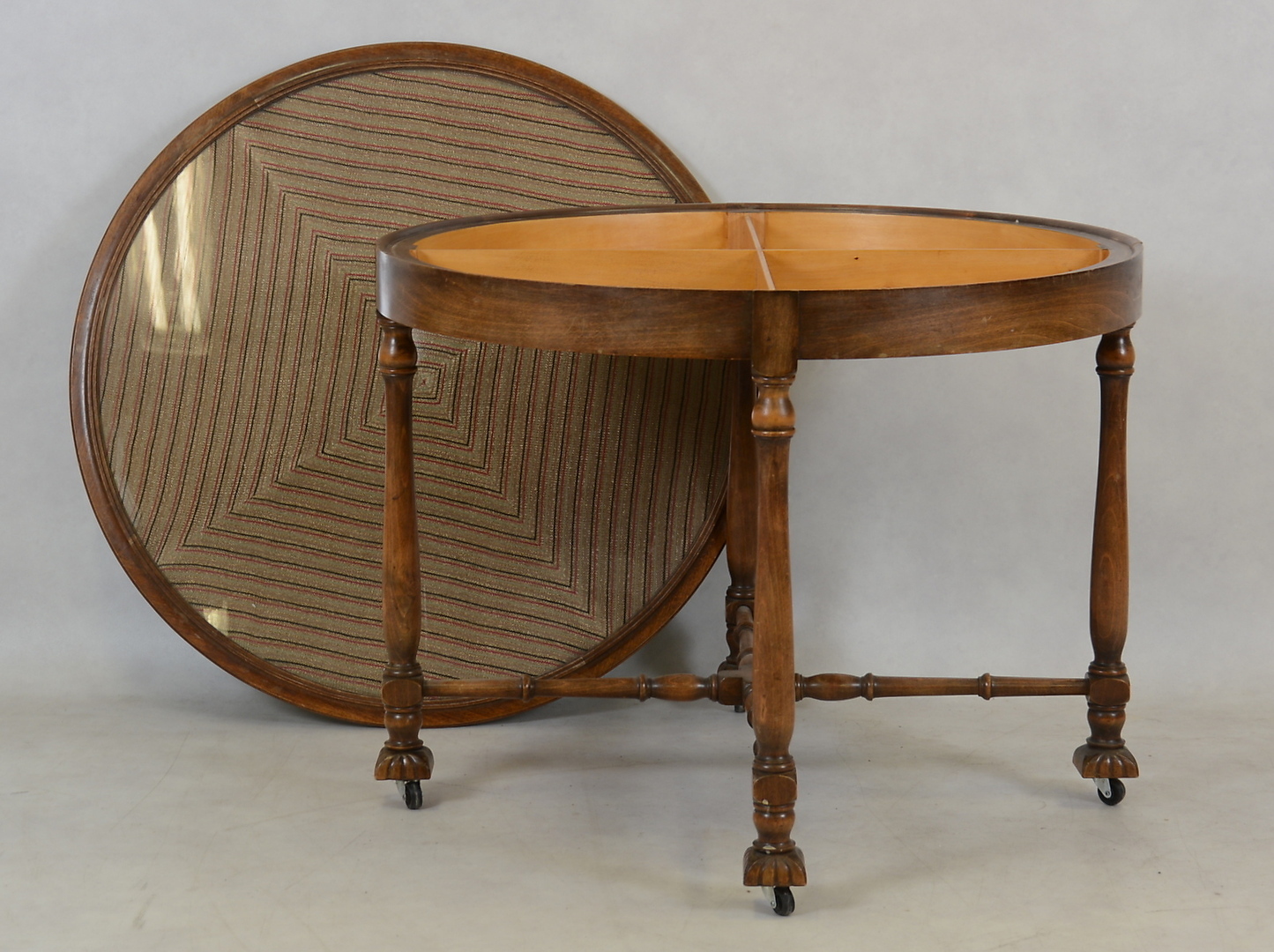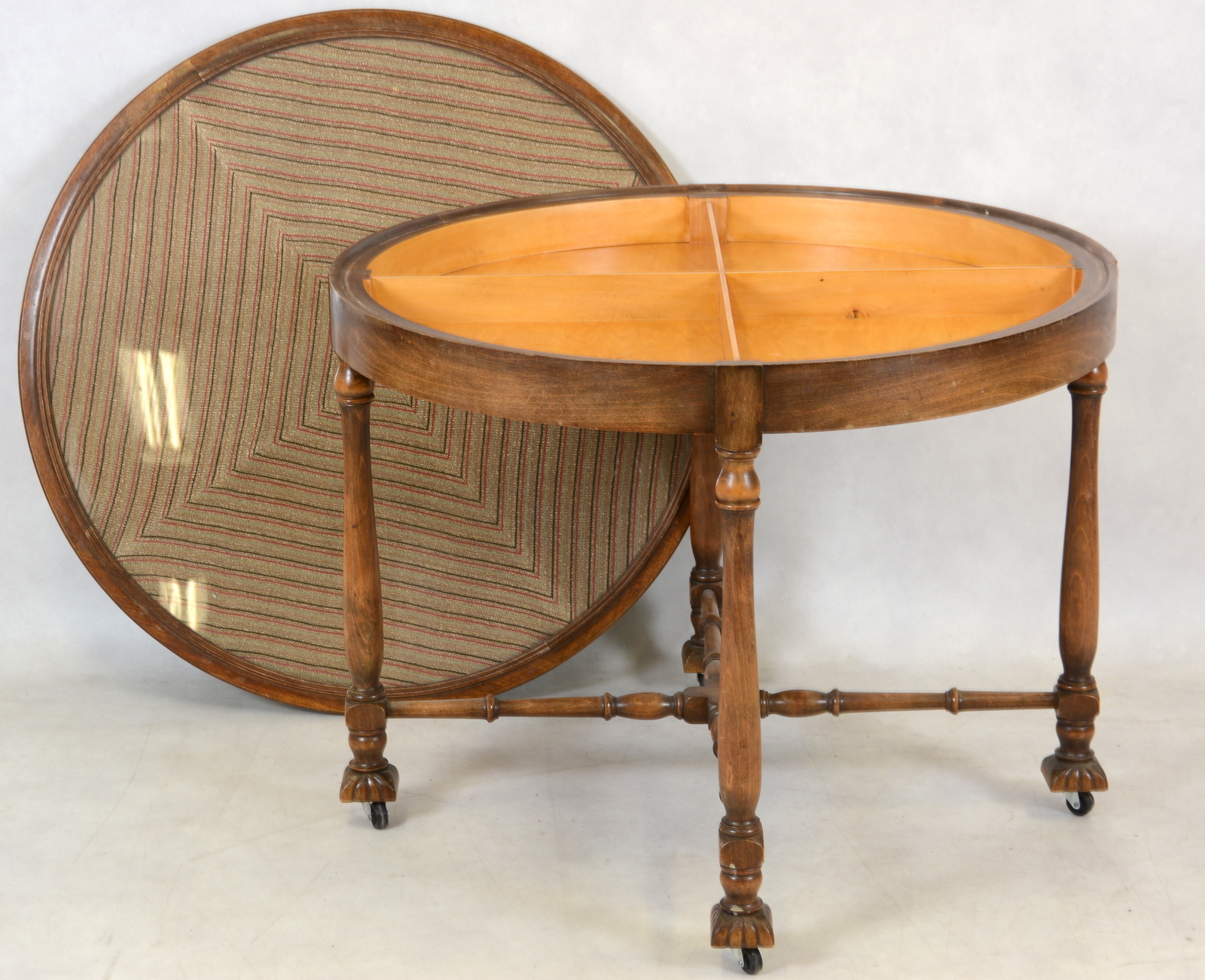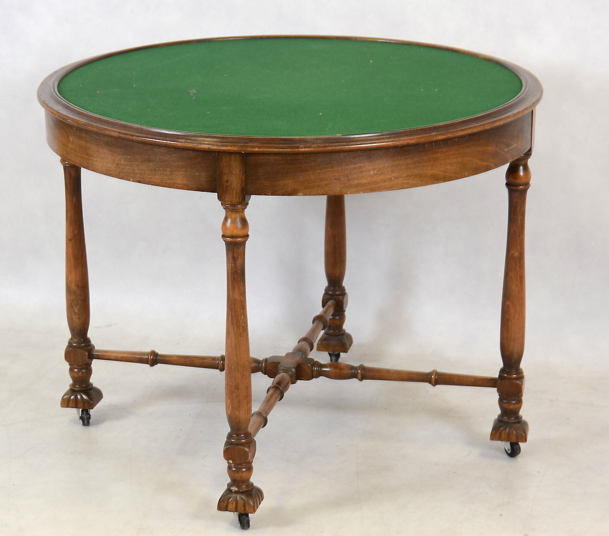 338919. SPIELTISCH, runde Form, Mitte des 20. Jahrhunderts.