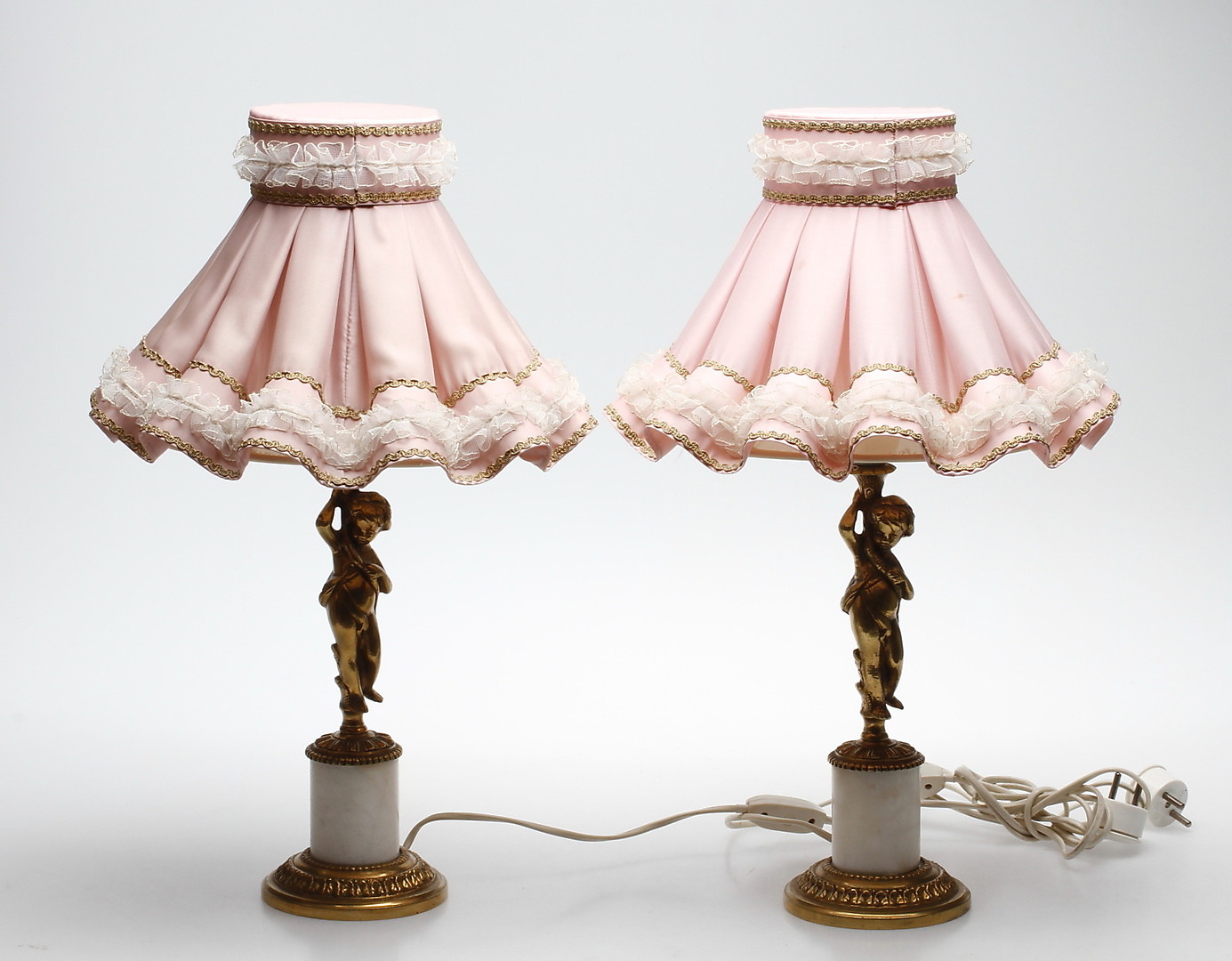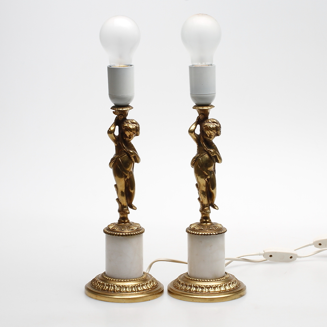 339175. TISCHLAMPEN, ein Paar, Messing und Alabaster, 1900er Jahre.