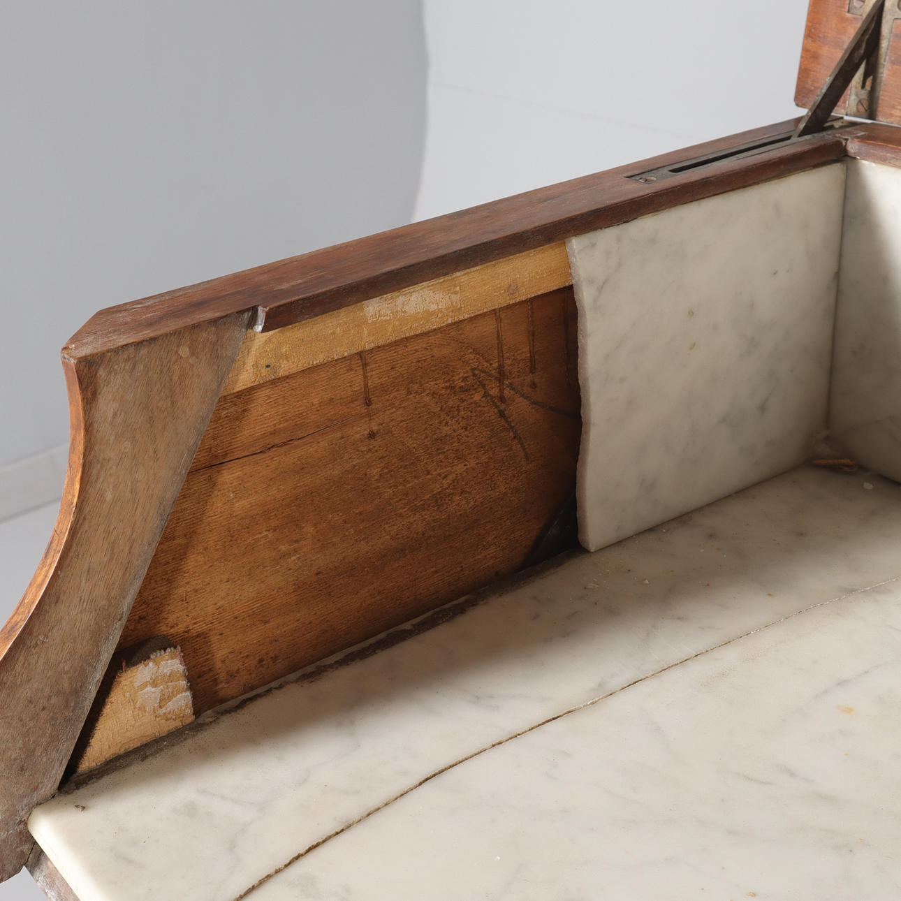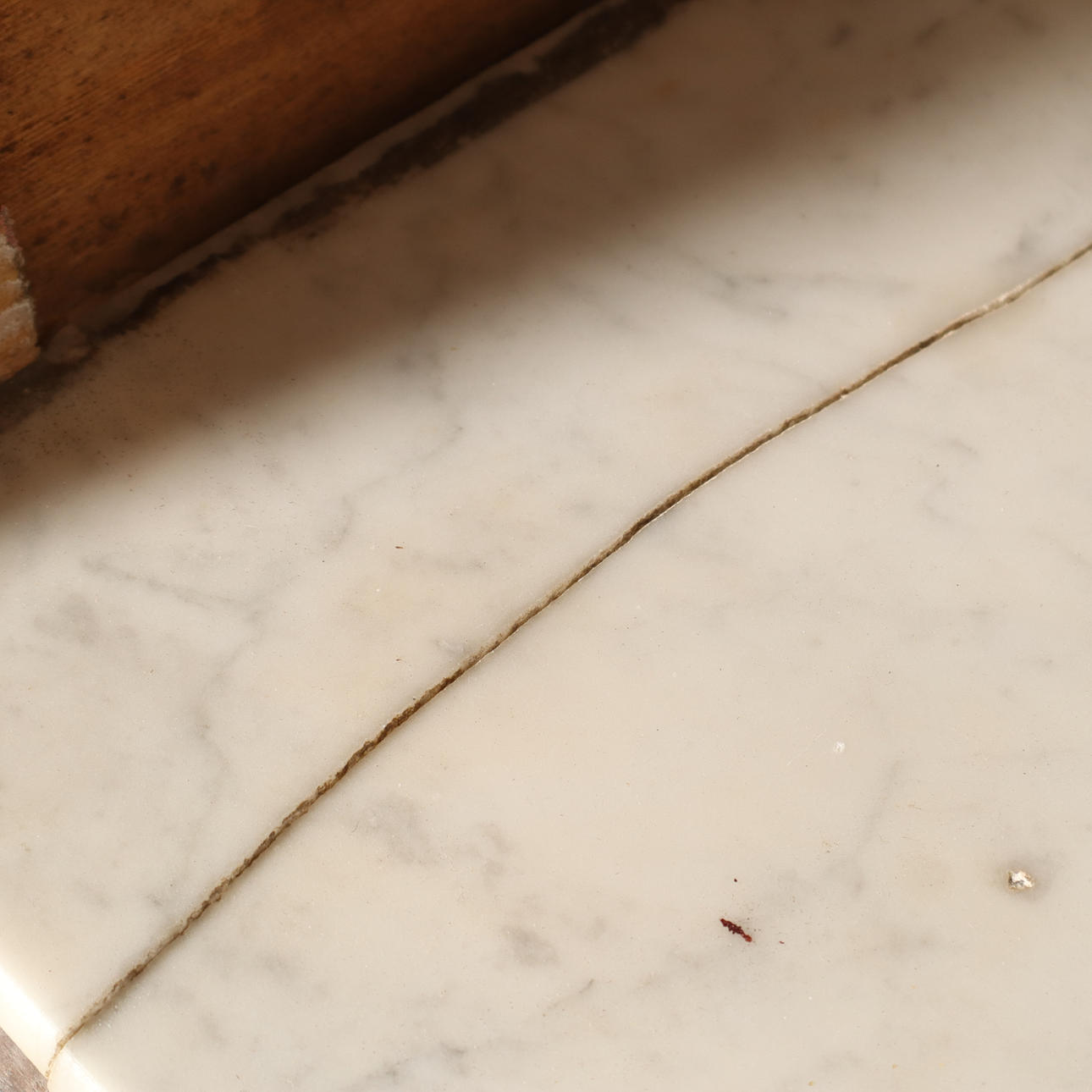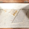 Gebrauchs- und Alterungsverschleiß, Beschädigungen an Steinplatten, fehlende Teile, Kratzer, Scheuern, trockene Risse, Spuren.