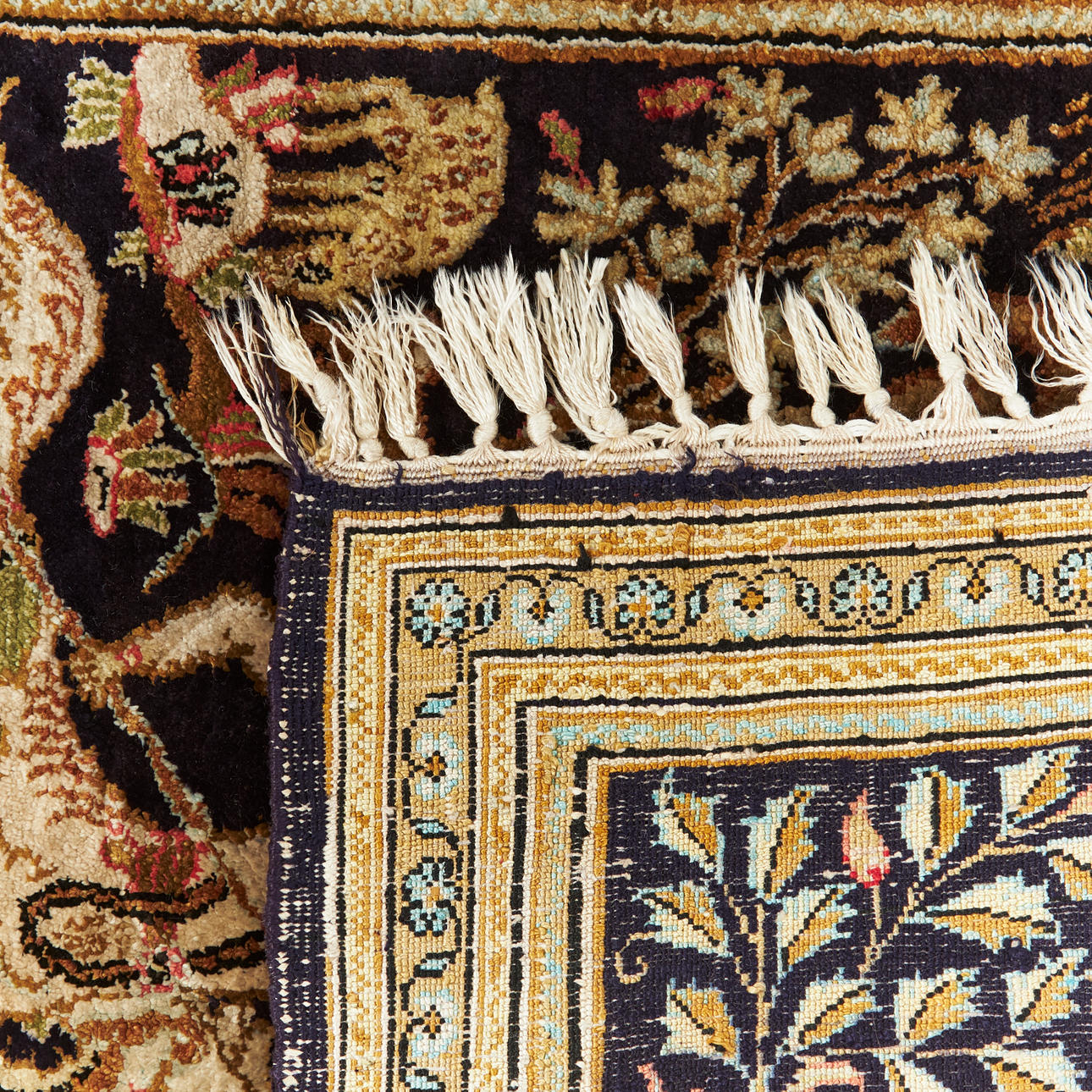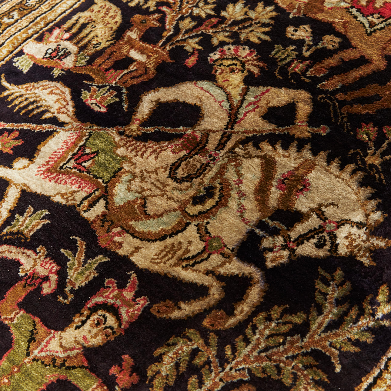 3393785. ORIENTTEPPICH, persisch, Seidenelemente, Muster mit Reiter und Tier.