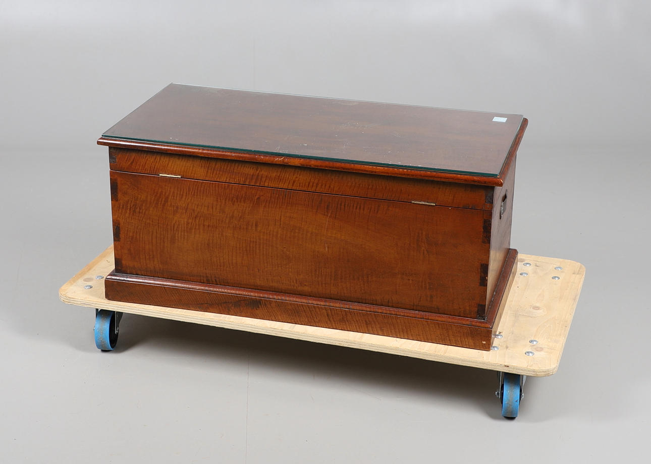 EINE DECKENBOX AUS ÖSTLICHEM HARTHOLZ MIT HEBEDECKEL.