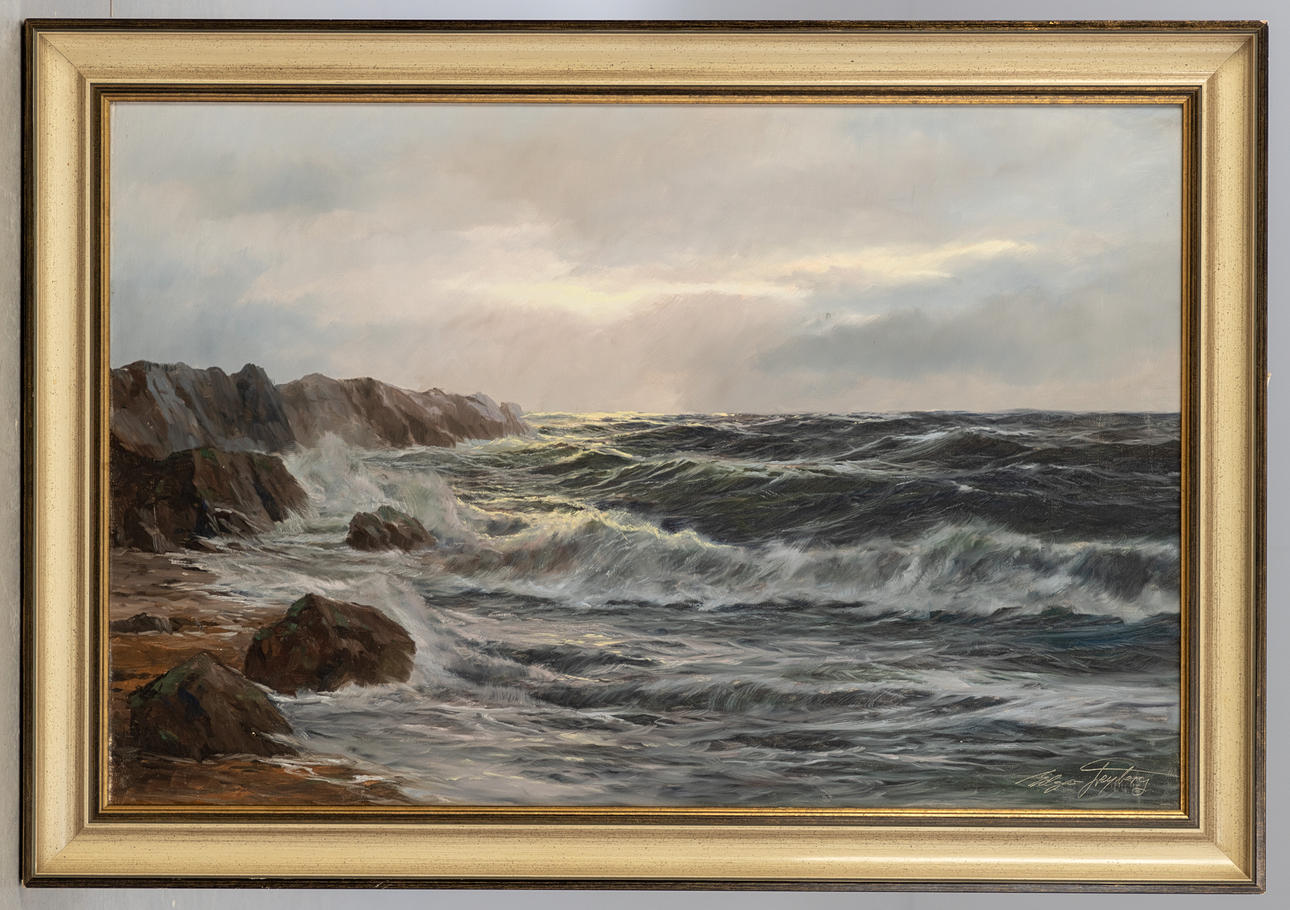 Edgar Freyberg (geb. 1927), Brandung, Öl auf Leinwand, signiert, ca. 61 x 90 cm, mit Rahmen ca. 71 x 102 cm.