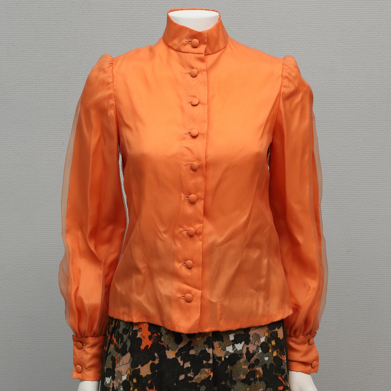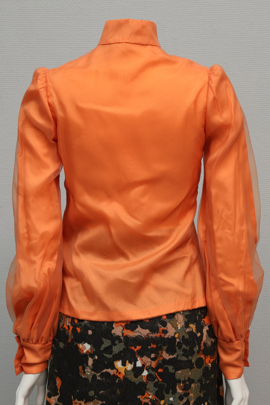 Orangefarbene Bluse, Chiffon-Seidenstoff, Länge ca. 60 cm, Innenarmlänge ca. 47 cm