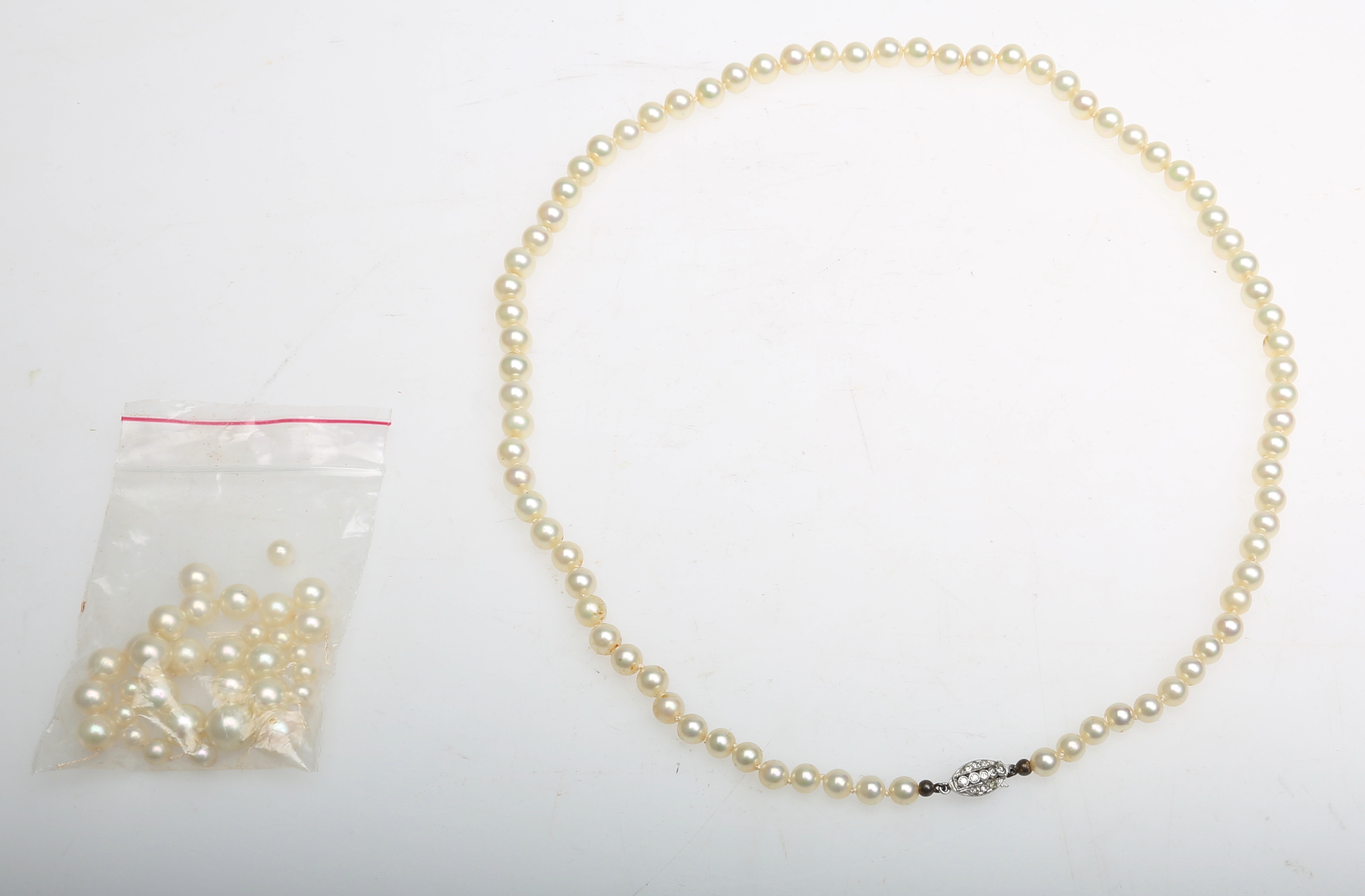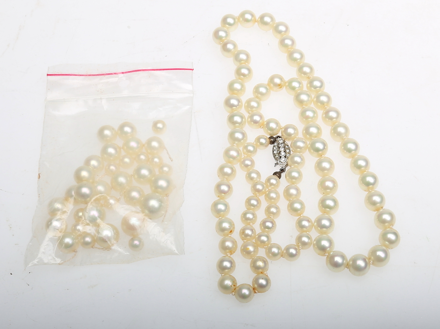 340128. PERLENHALSKETTE, mit Silberverschluss.