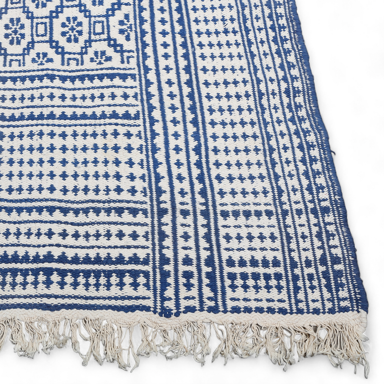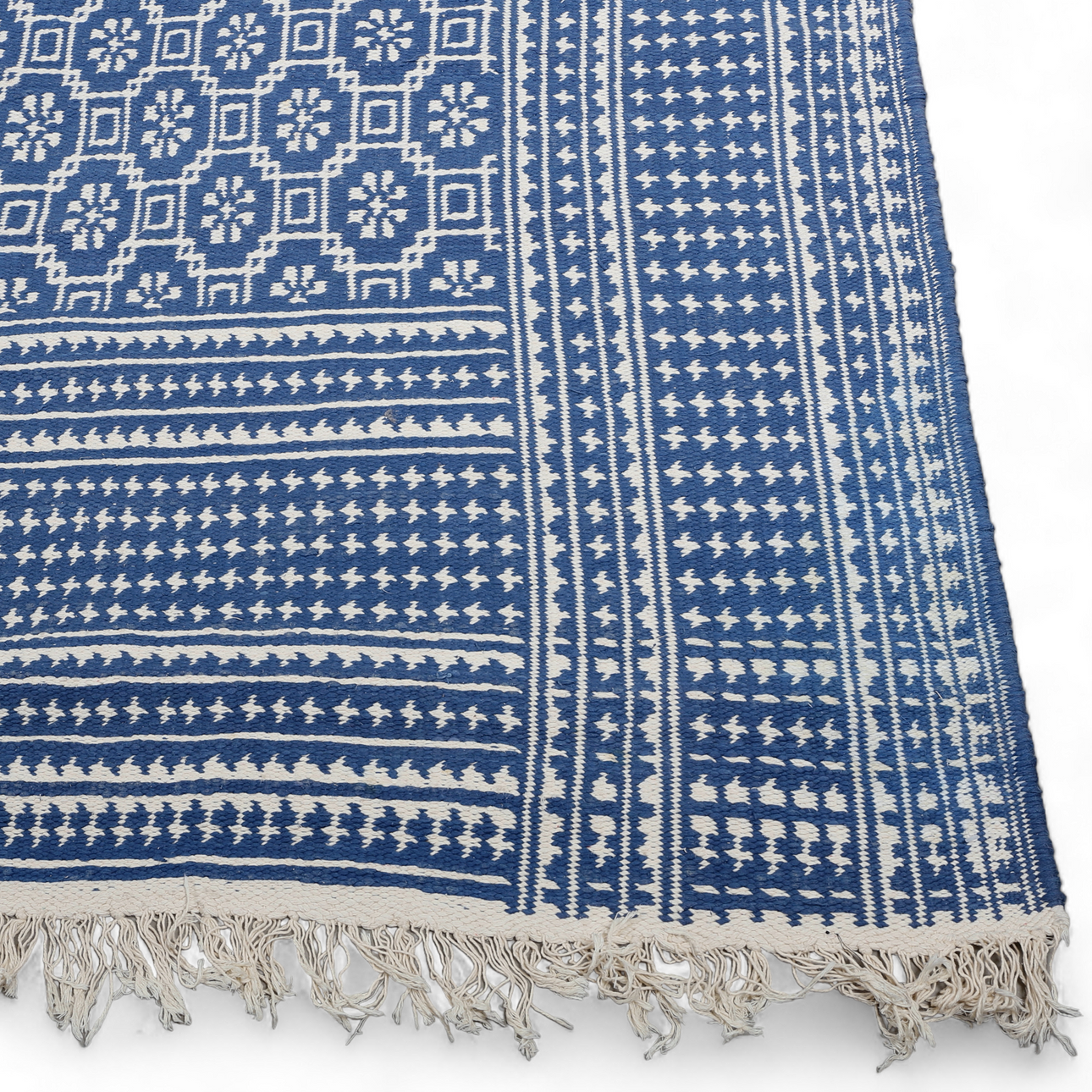 Teppich, Zilo, glatt gewebt, Baumwolle, 445 x 305-313 cm.