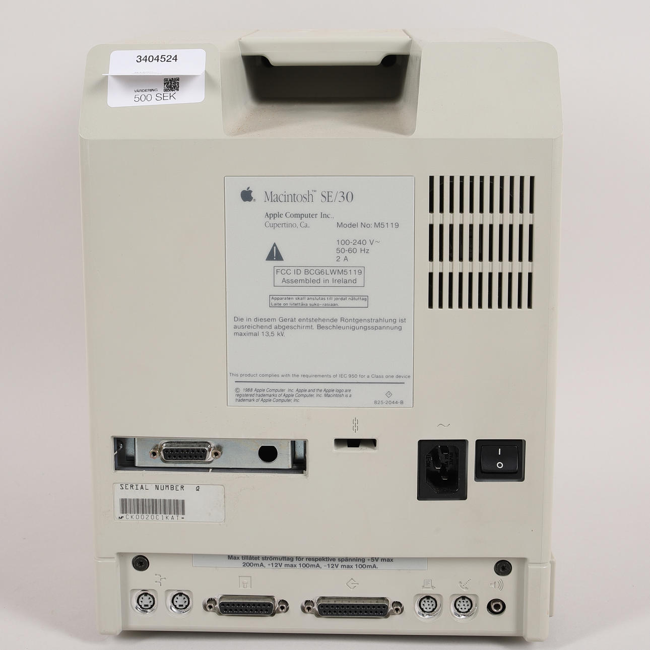 1 Macintosh SE/30 (Modellnummer M5119), mit Tastatur (Modellnummer M0118, finnisch/schwedische Tastaturbelegung)