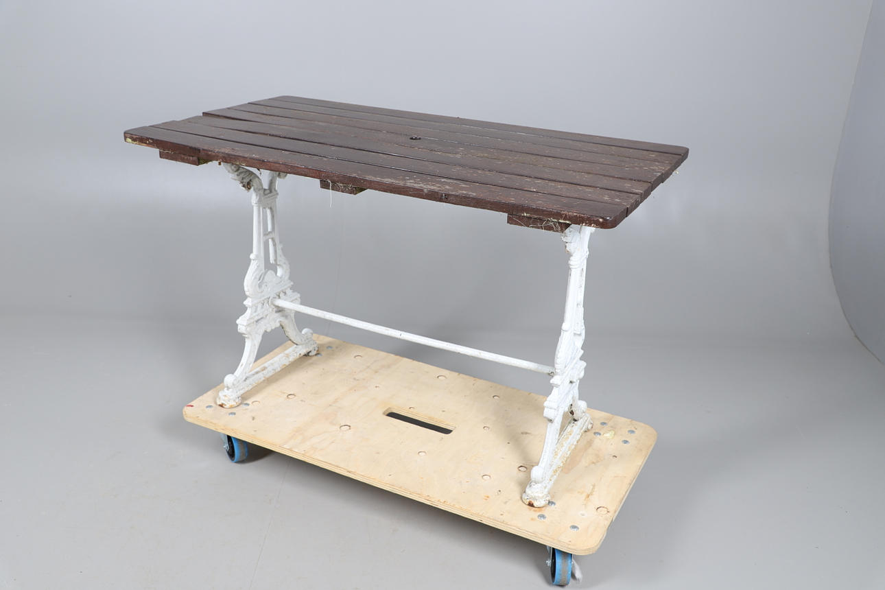 EIN GARTENTISCH AUS GUSSEISEN IM VIKTORIANISCHEN STIL.
