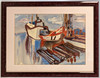 Hans Hermann Hagedorn (1913-1998), Boote, Aquarell über Kohlestift, signiert, ca. 45 x 63 cm, hinter Passepartout und Glas gerahmt, mit Rahmen ca. 67,5 x 86,5 cm.