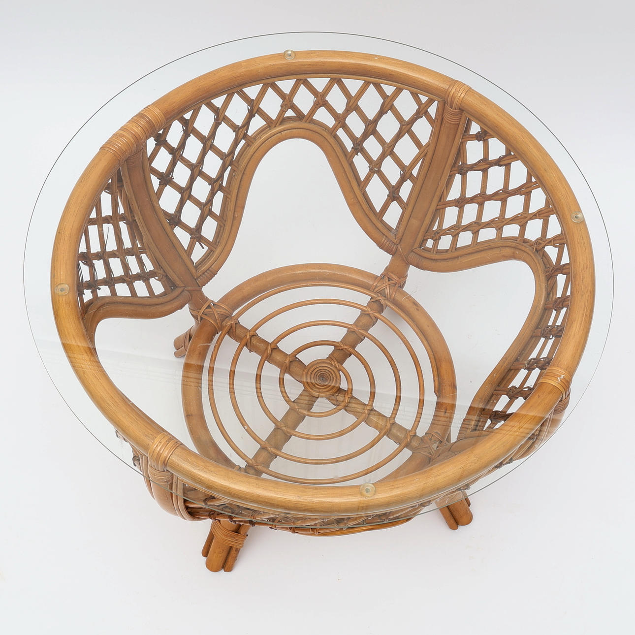 3412504. RATTANTISCH, mit Glasplatte.