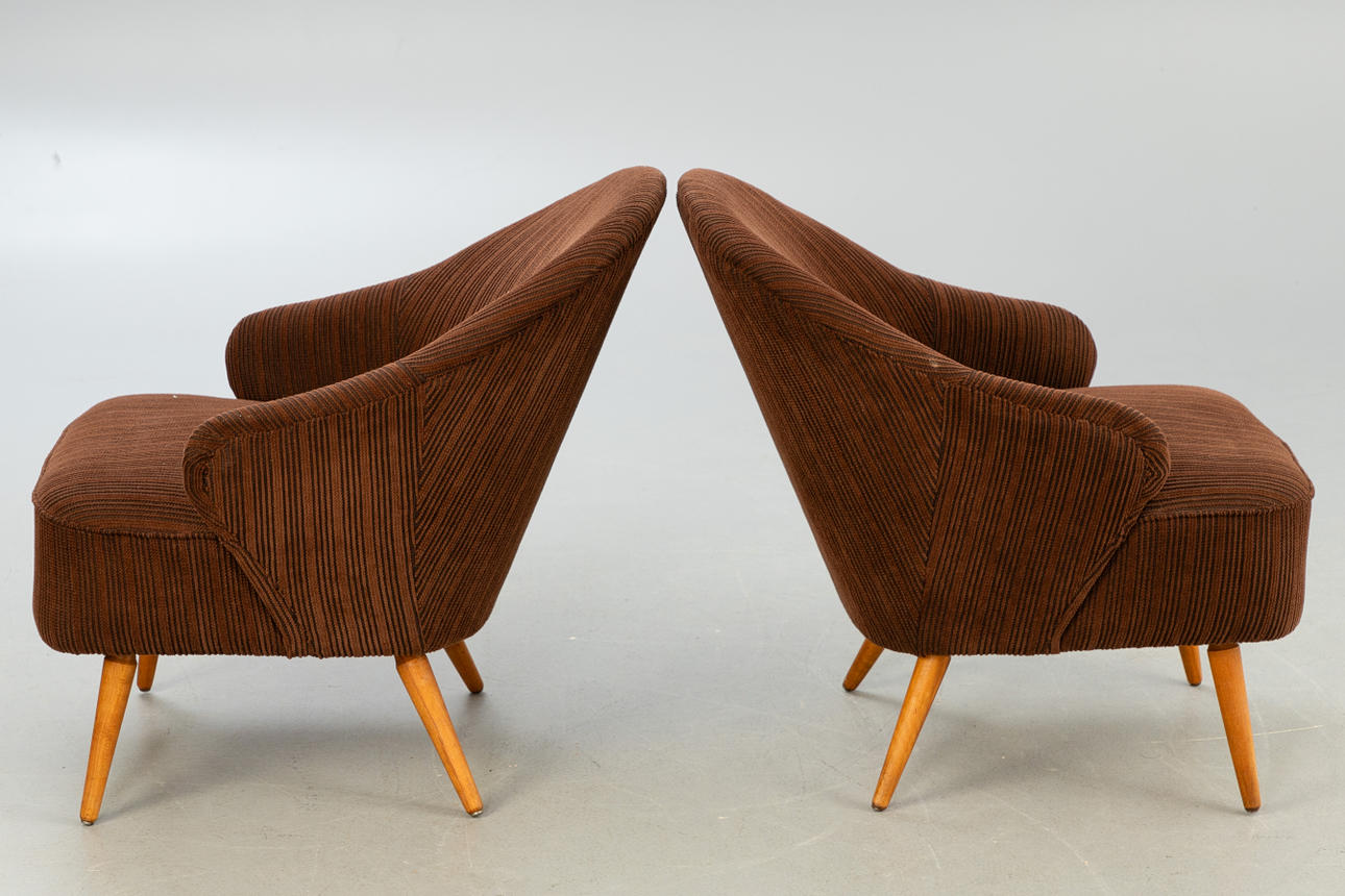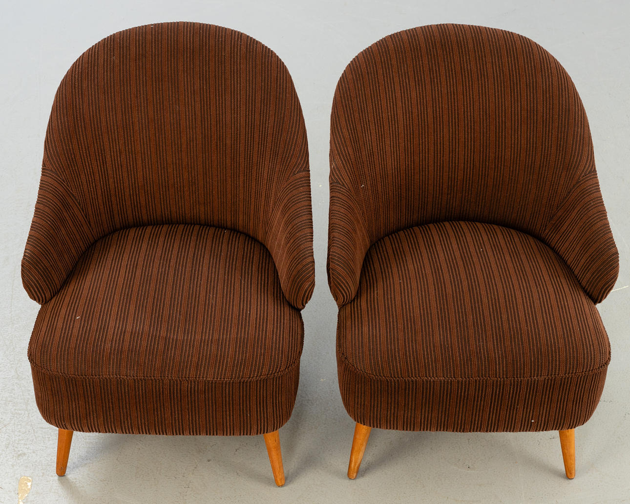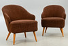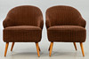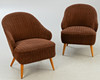Paar Cocktail Sessel mit braunem Cordbezug aus den 1950/60er Jahren. ca. H 74 cm x B 61 cm x T 65 cm, Sh 40 cm.