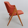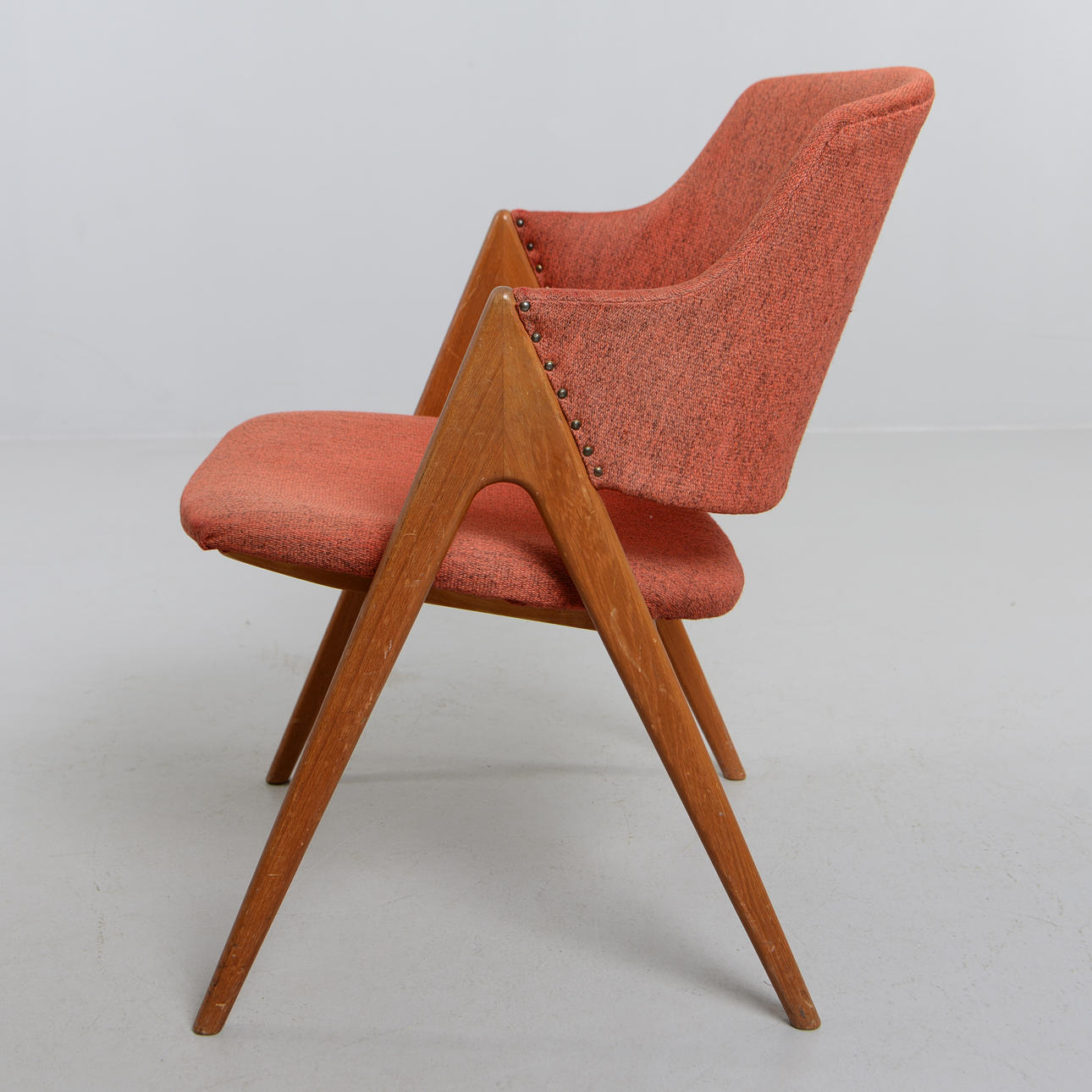 Breite 57 cm Höhe 73 cm. Sitzhöhe 43 cm. Literatur: Siesing, Andreas, Schwedische Möbel: folkhemsform aus Wolle, Jacaranda, Kiefer und Buch: 1949-1970, Atlantis, Stockholm, 2015, S. 206.