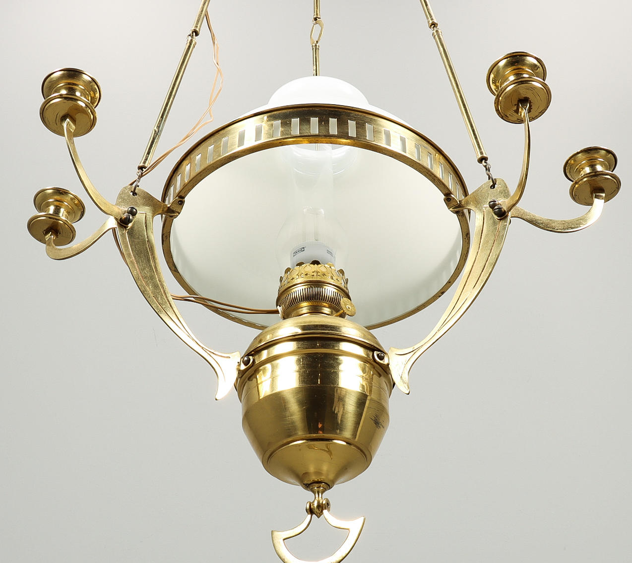 3420120. DECKENLEUCHTE Messing, Jugendstil.