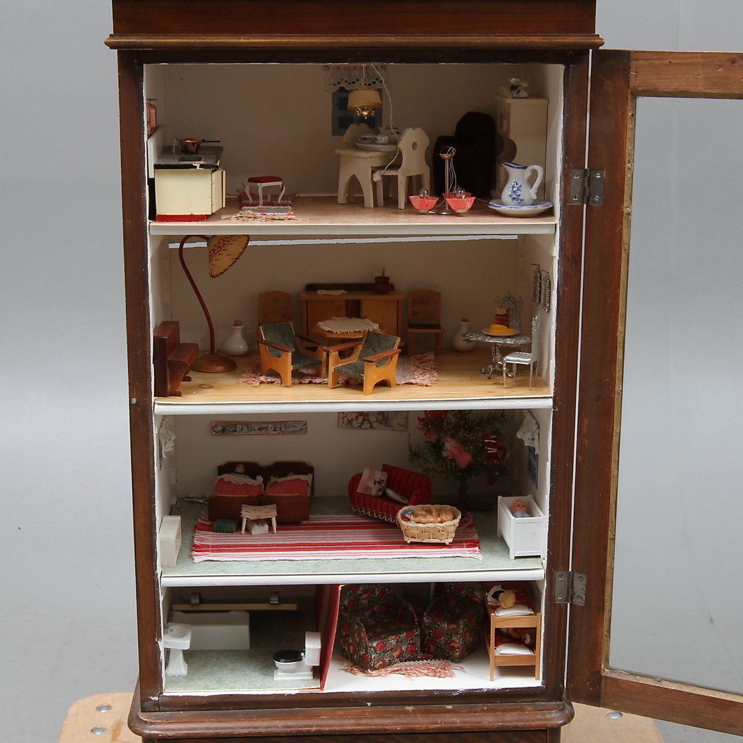 342026. SCHRANK mit Puppenstubenmöbeln, 19./20. Jahrhundert.