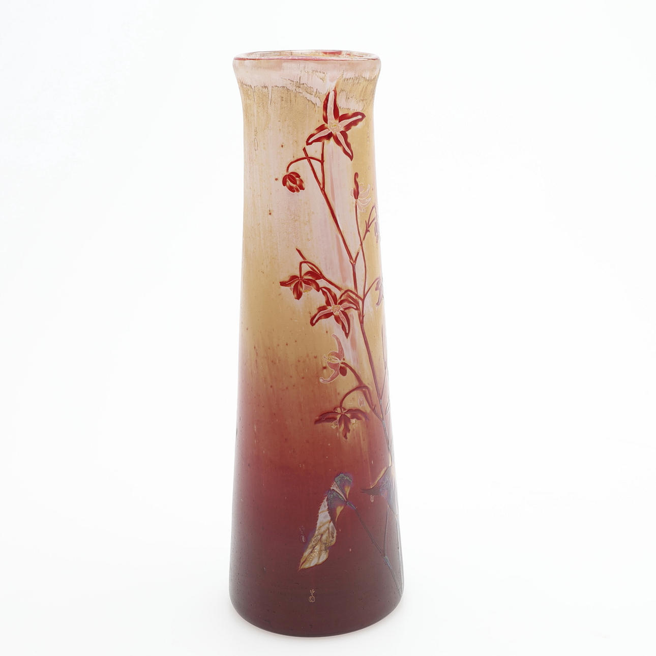 Jugendstil, Überhangglas mit Emailmalerei, Frankreich, frühes 20. Jahrhundert, Höhe 23 cm.