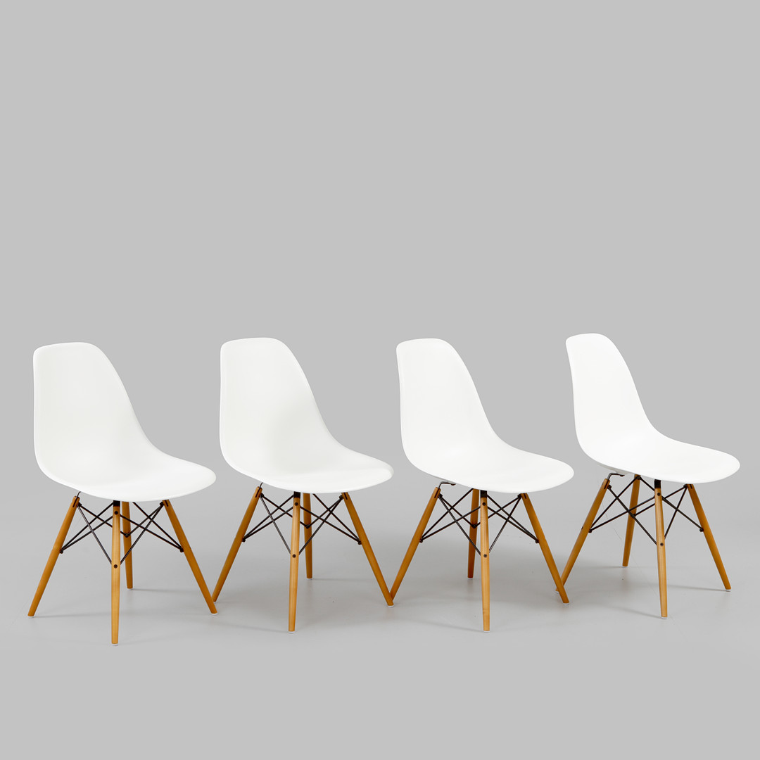 3422645. CHARLES & RAY EAMES. Stühle, 4 Stück, „DSW“, Vitra, gestempelt.