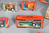 Eine Sammlung von Boxmodellen, darunter 9575 New Holland, 9576 Combine Harvester, 9520 Massey Ferguson, 9570 Massey Ferguson Harvester, 9518 Renault Tractor, 9652 Racing Motorcycles, 9817 Petrol Tanker, 9528 Fiat Tractor, 9526 Deutz Tractor, 9521 Volvo Tractor, 9562 Double Horse Box, 9528 Lamborghini Tractor, 9597 Ford 8-Radtraktor und viele andere Modelle.