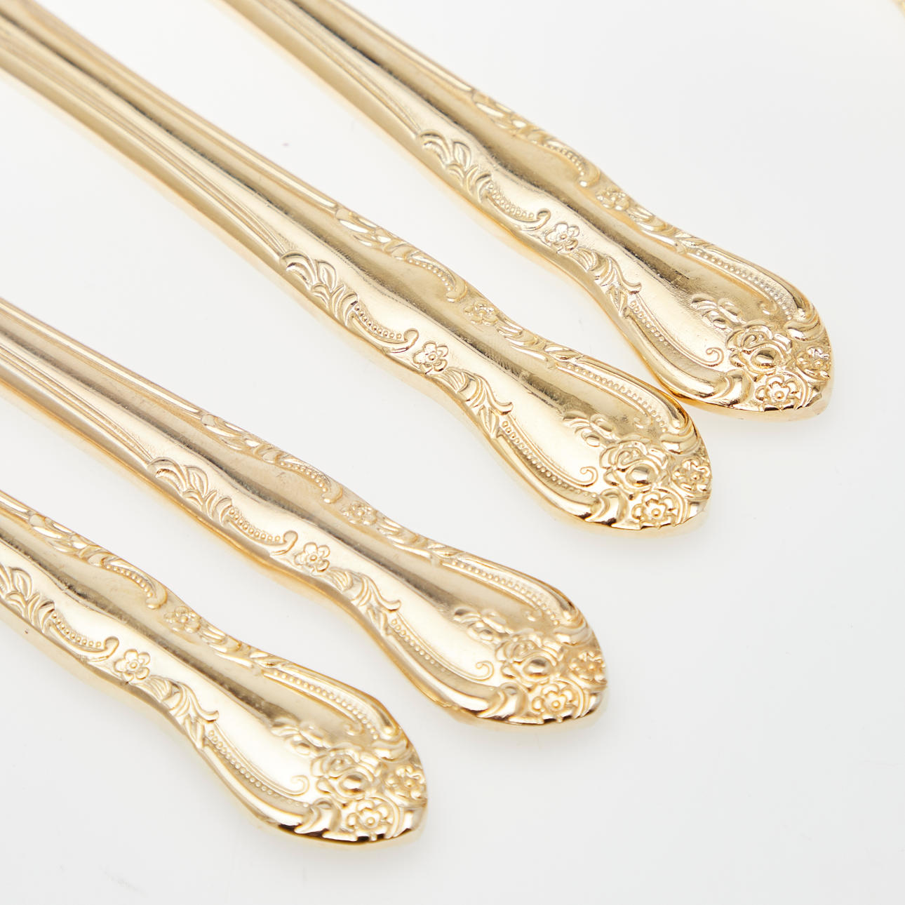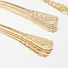 sowie einer Kuchengabel von Solingen und vier Teelöffel von WMF, jeweils mit floralem oder Perlbanddekor verziert, jeweils hartvergoldet und mit Messerklingen aus Edelstahl sowie mit einem Herstellerstempel versehen. (73).