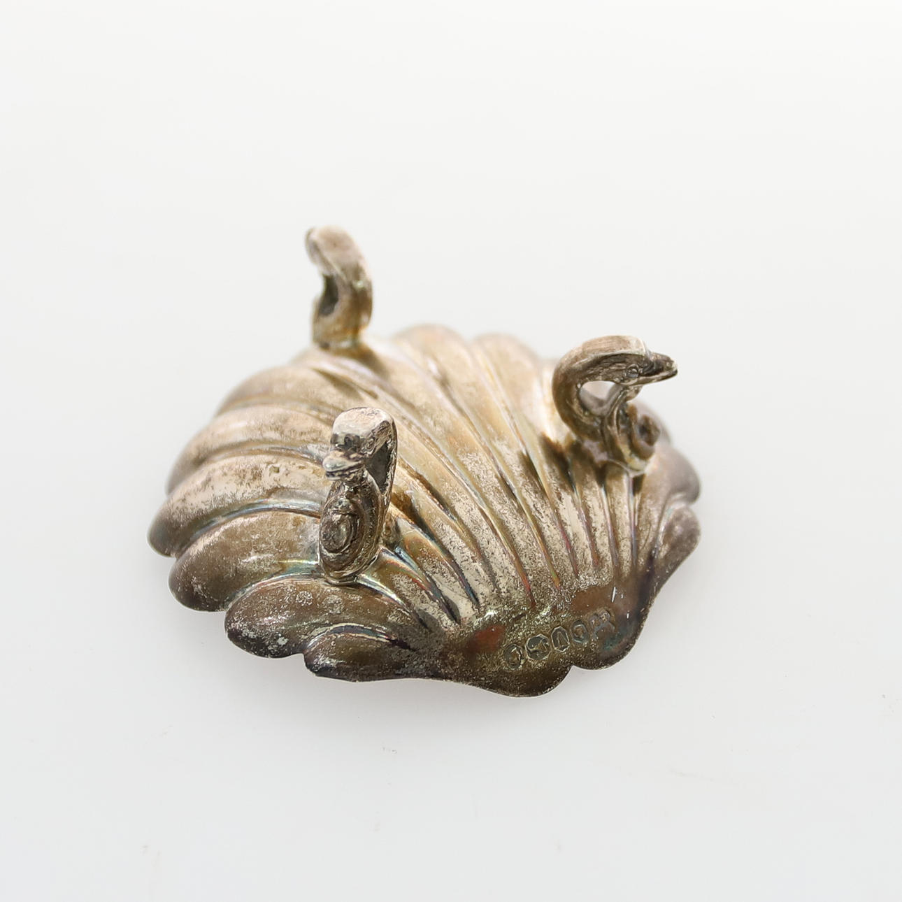 Martin Hall & Co, Sheffield 1863, auf drei gegossenen Delfinfüßen, 6 cm breit x 2,5 cm hoch, 31,8 g, 1,01 Unzen.