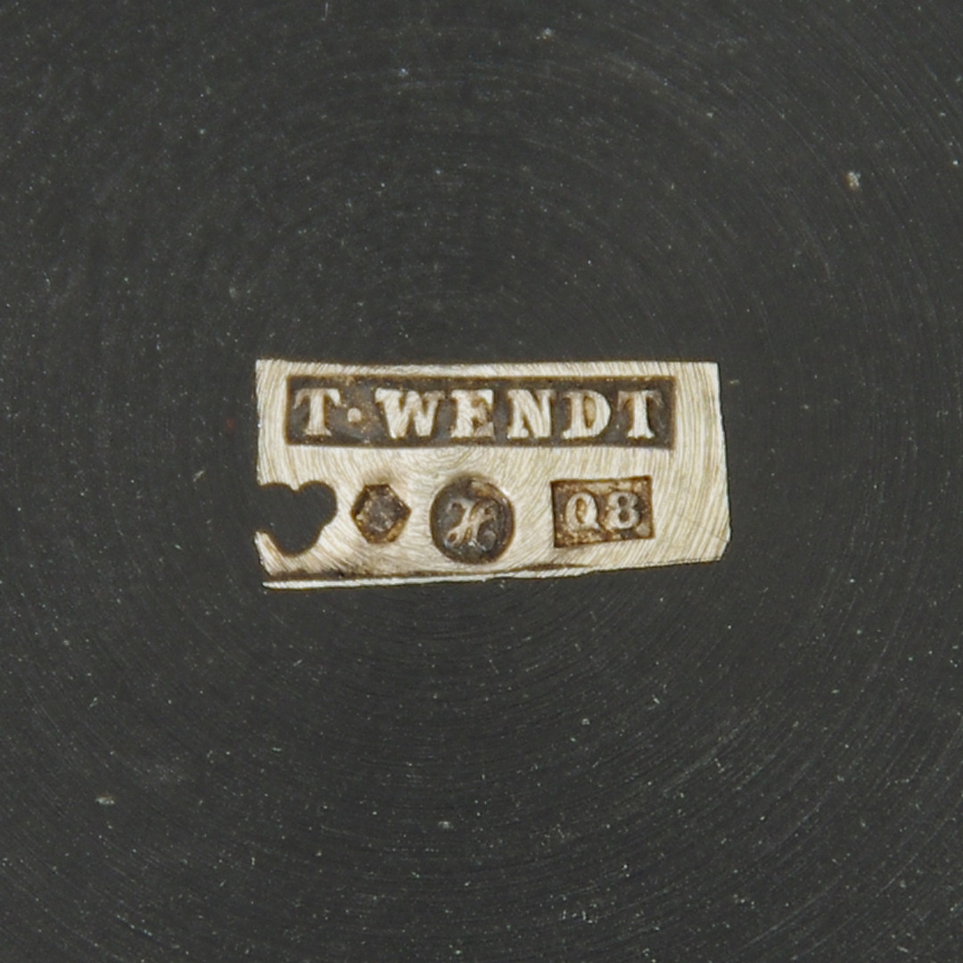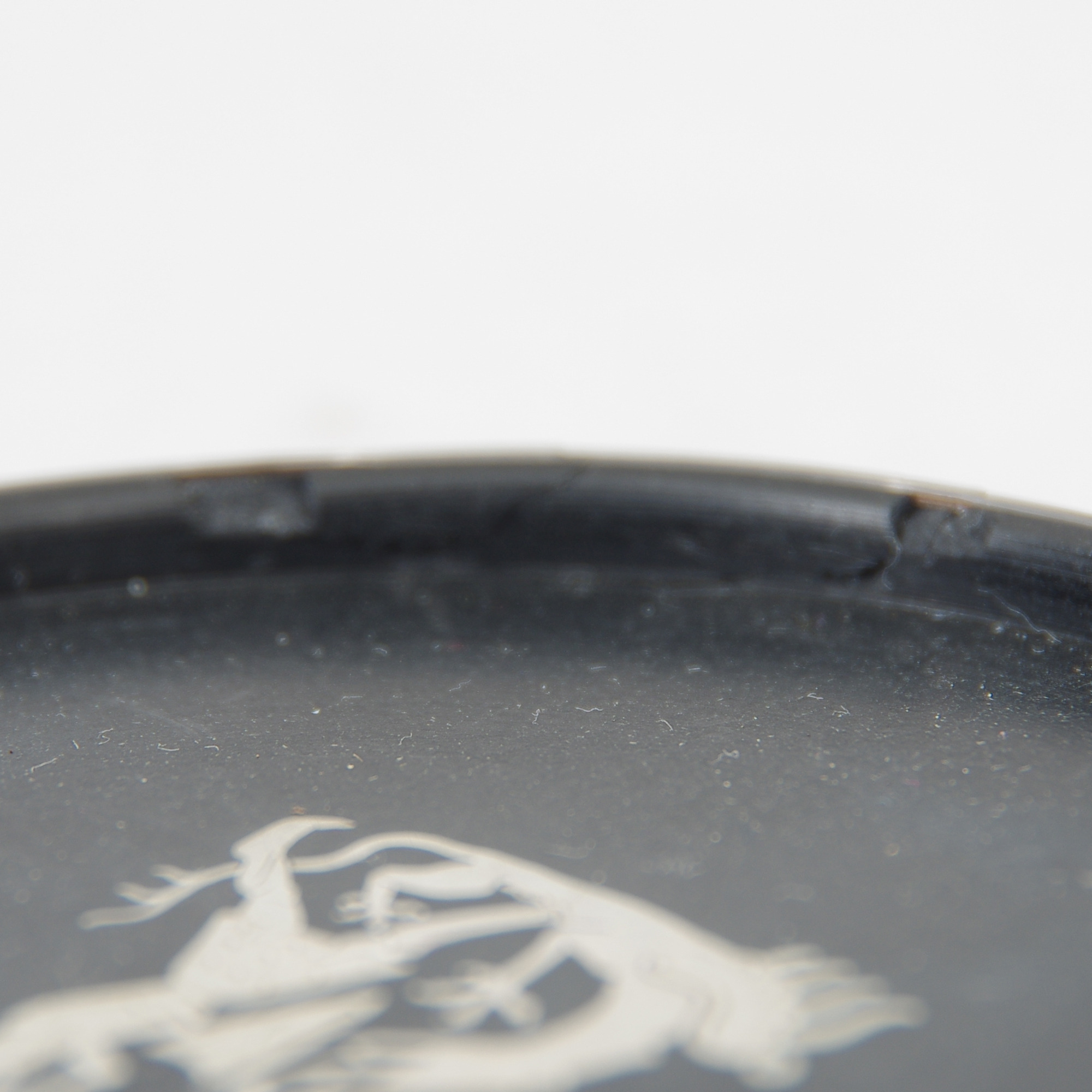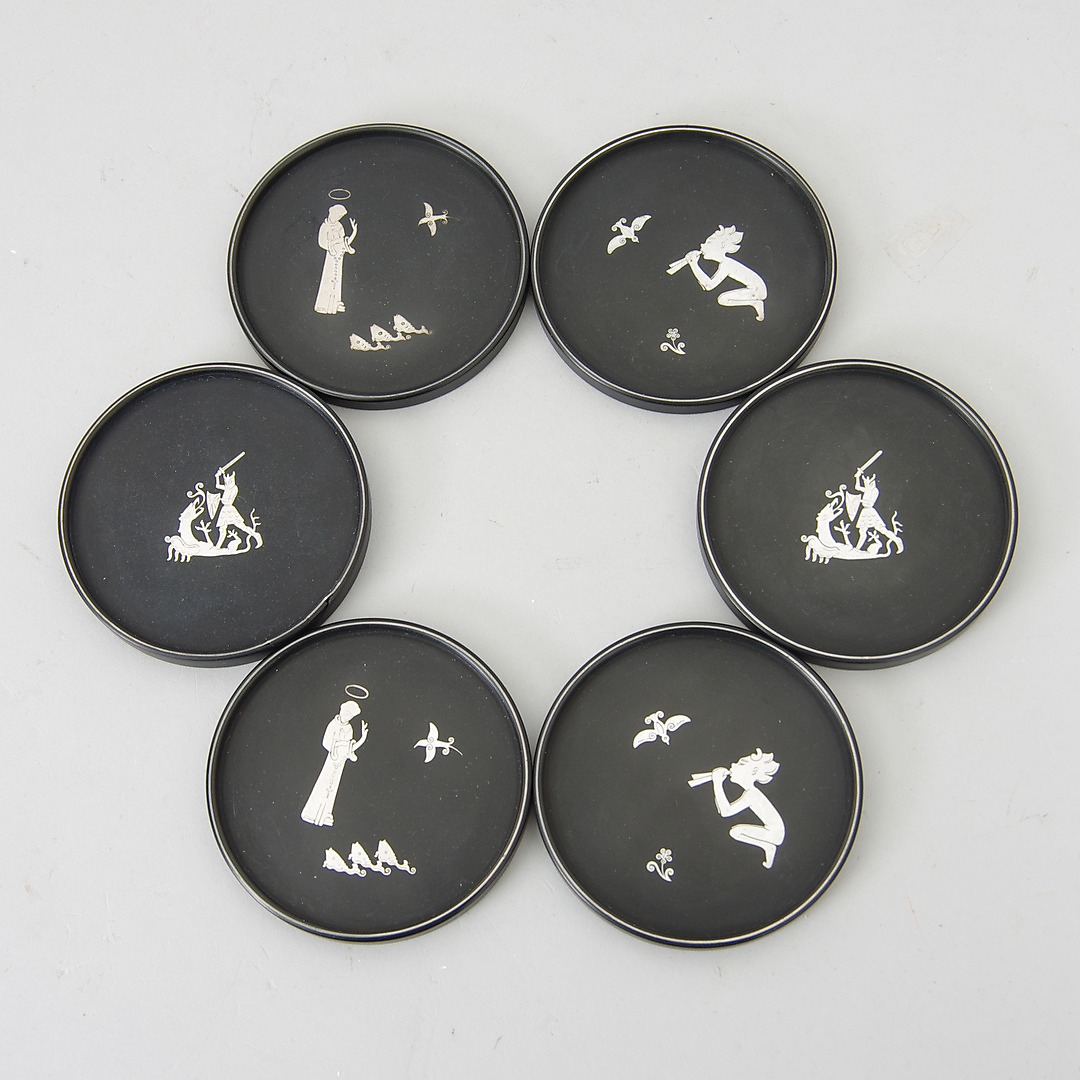 343551. UNTERSETZER, 6 Stück, Bakelit mit Silberdekor, Perstorp.