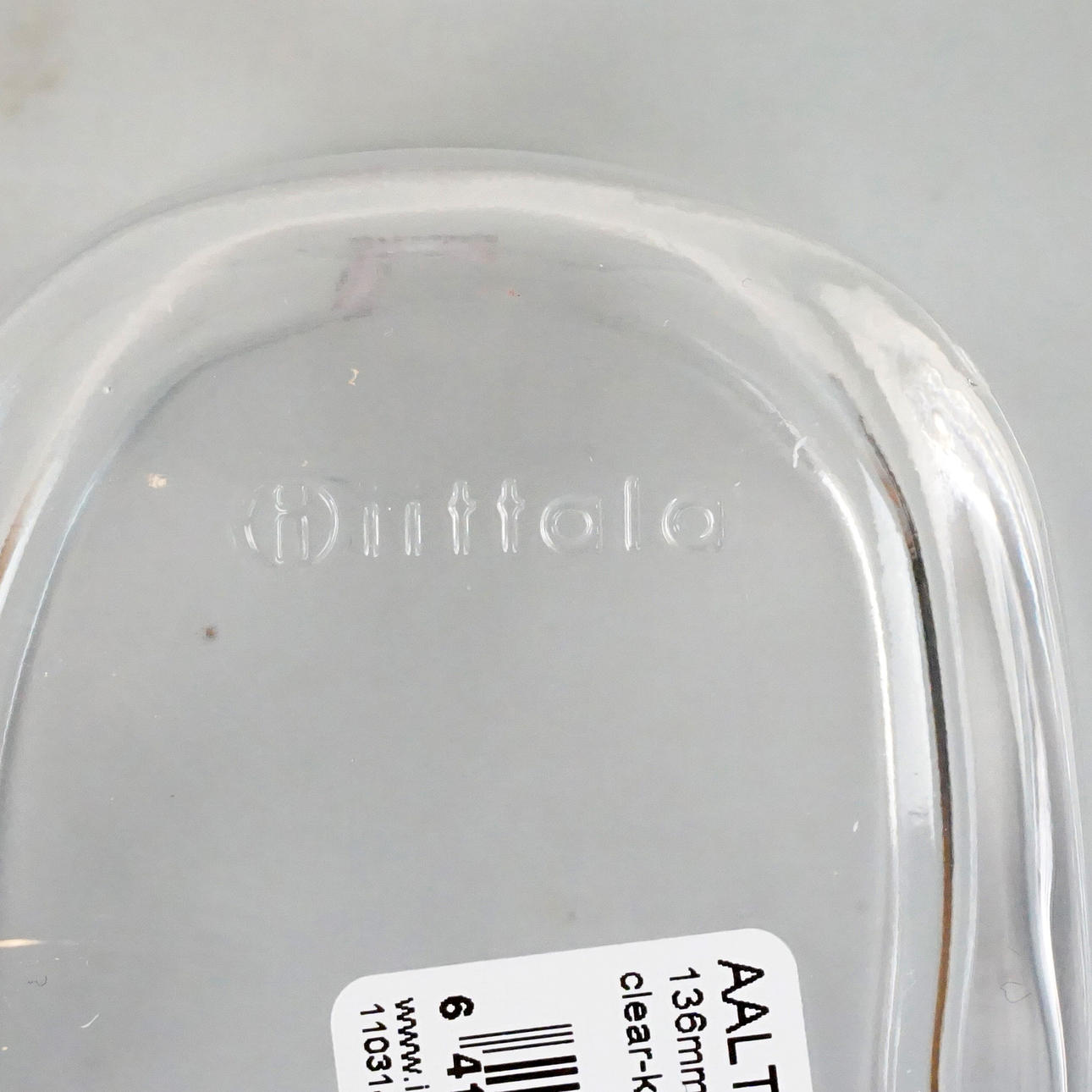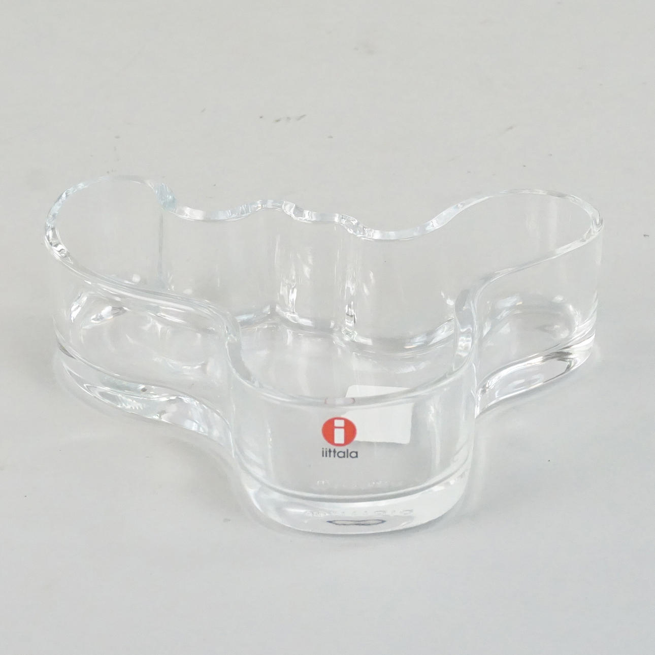 Klarglas Verschlagwortet mit „Iittala. Beschriftet. Originale Pappschachtel. Länge ca. 14 cm, Breite ca. 13,5 cm, Höhe 3,5 cm.
