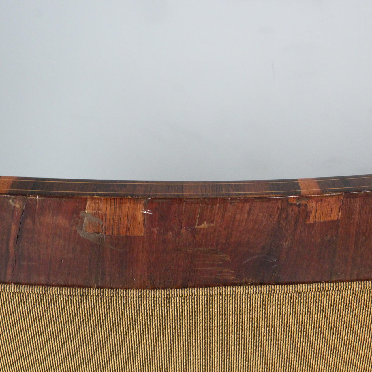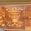 Biedermeier Sofa / Chaiselounge, aufgepolsterte Konstruktion aus lackiertem Holz, mit eingearbeiteten Intarsien verziert. Auf der Schauseite florales Intarsienwerk und umlaufend Bandintarsien.