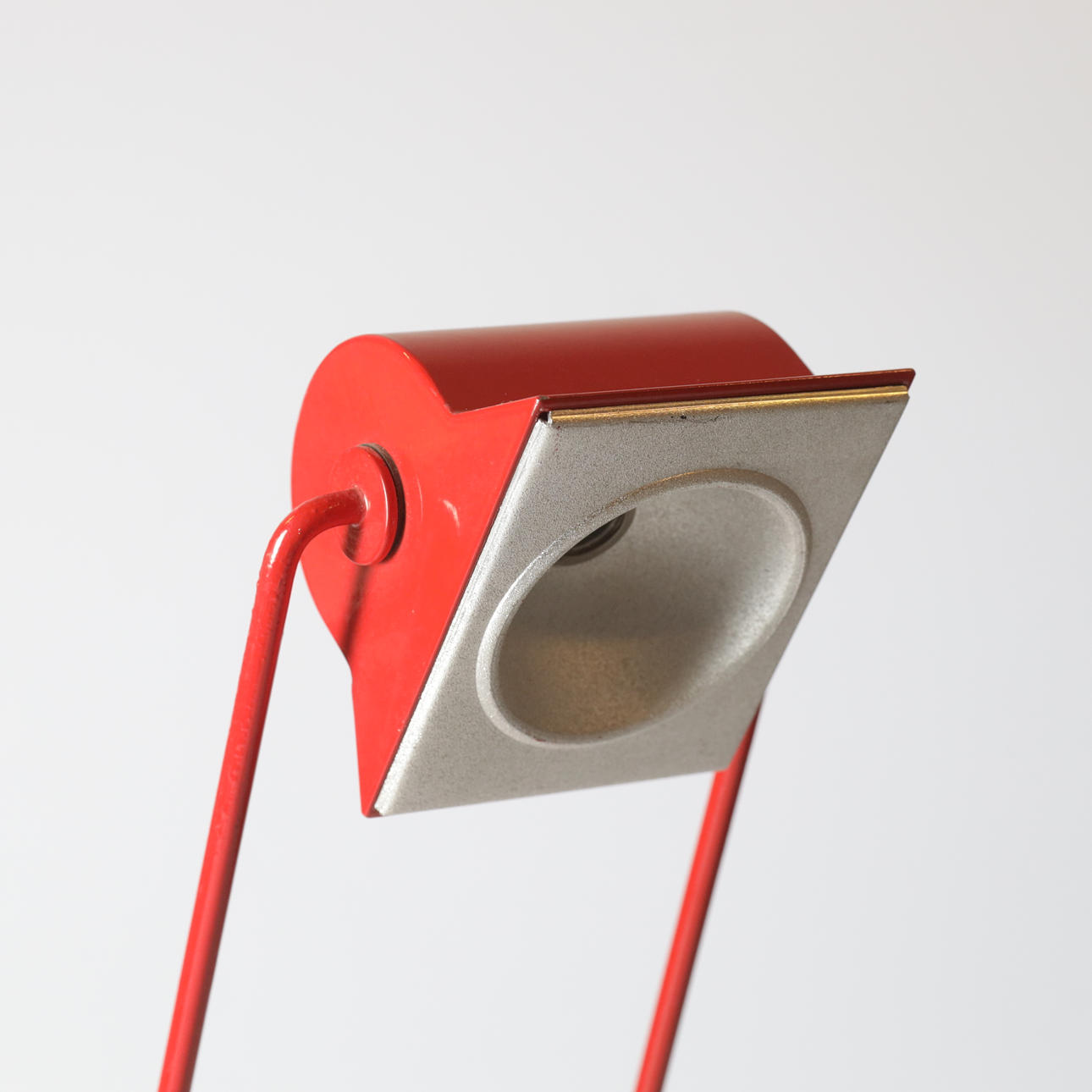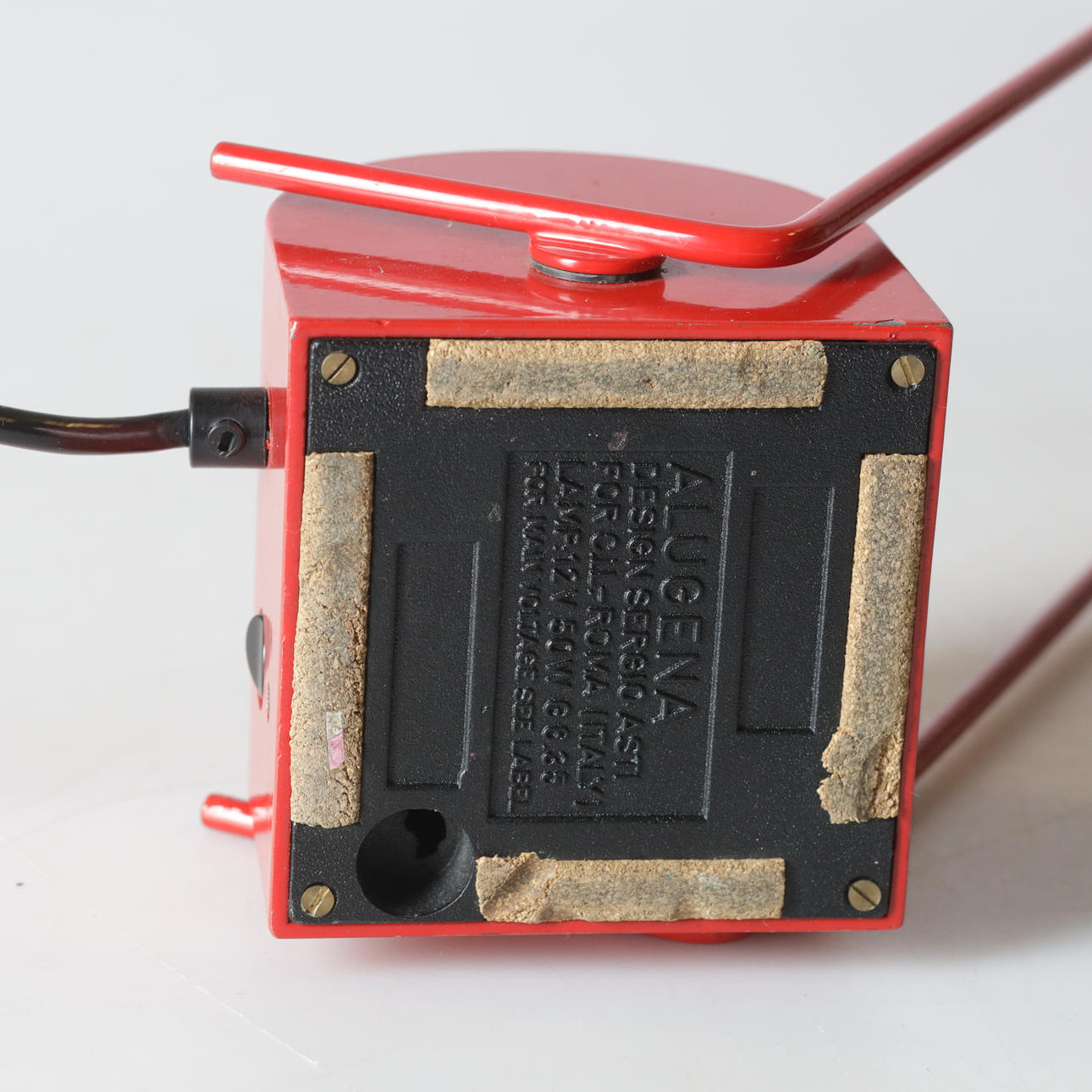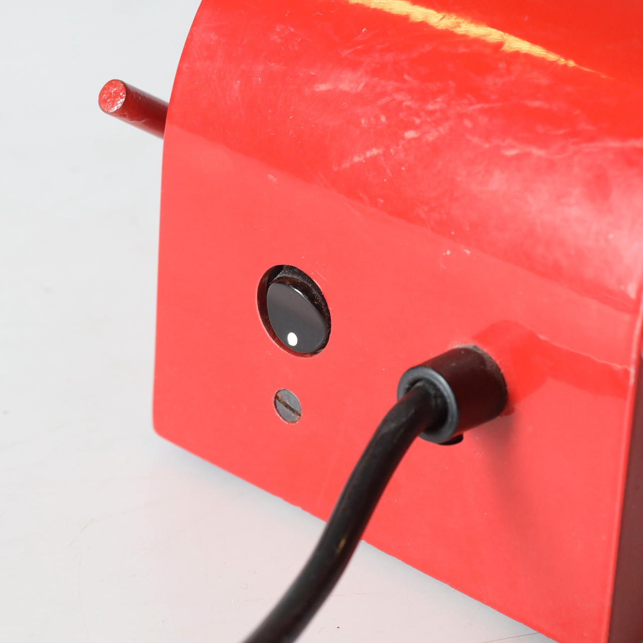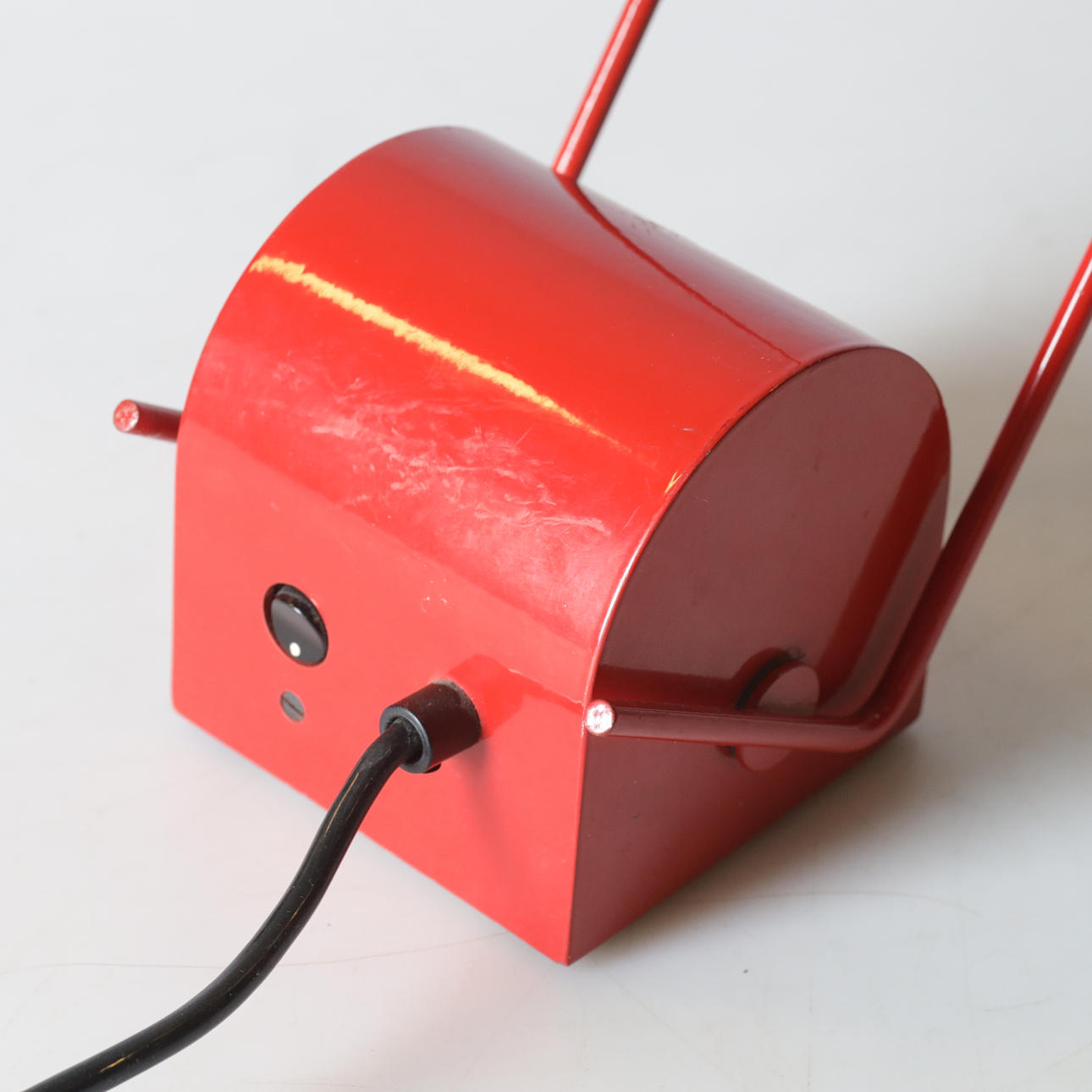 Rot lackiertes Metall, verstellbar bis maximal ca. 59 cm.
