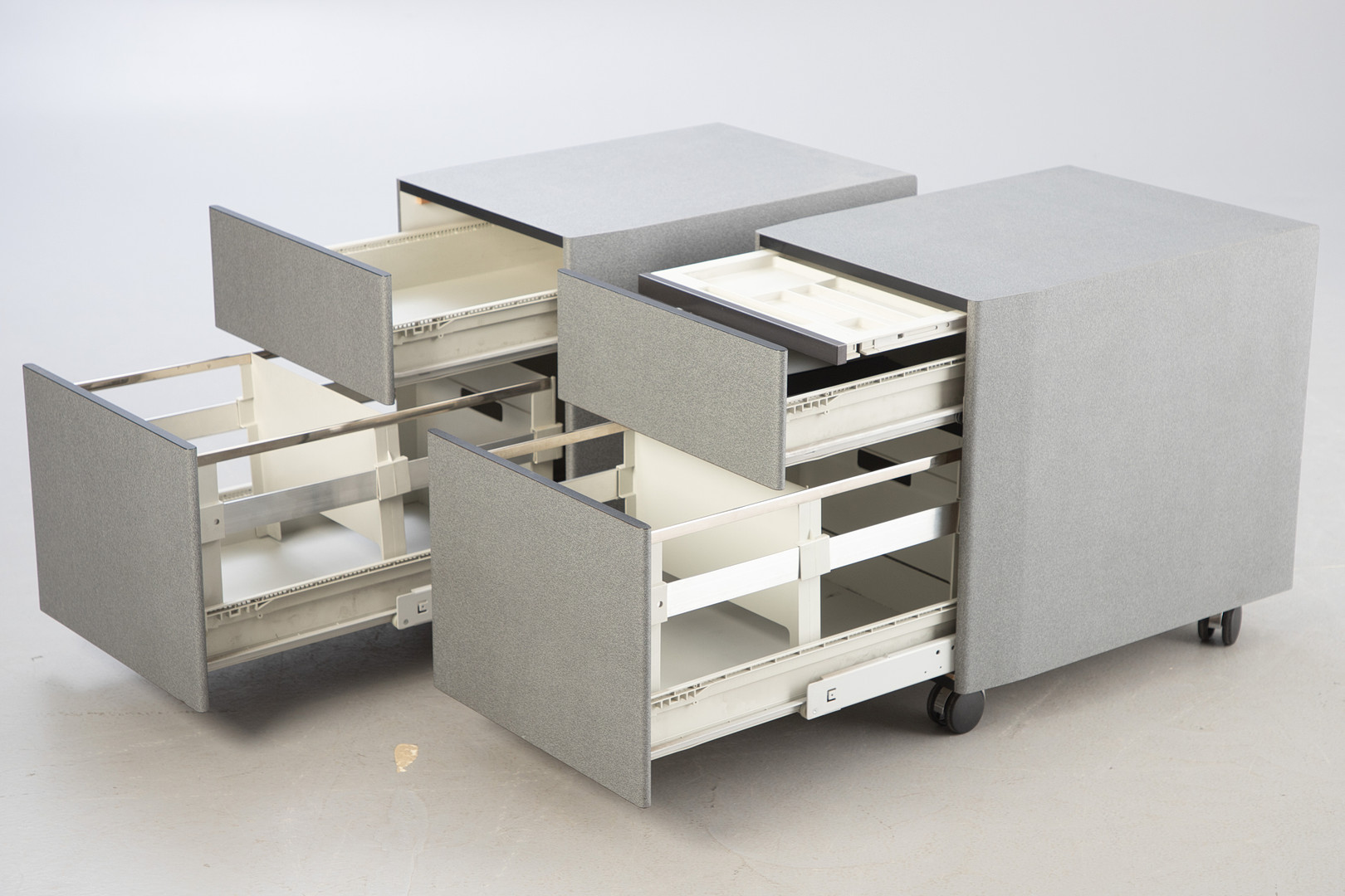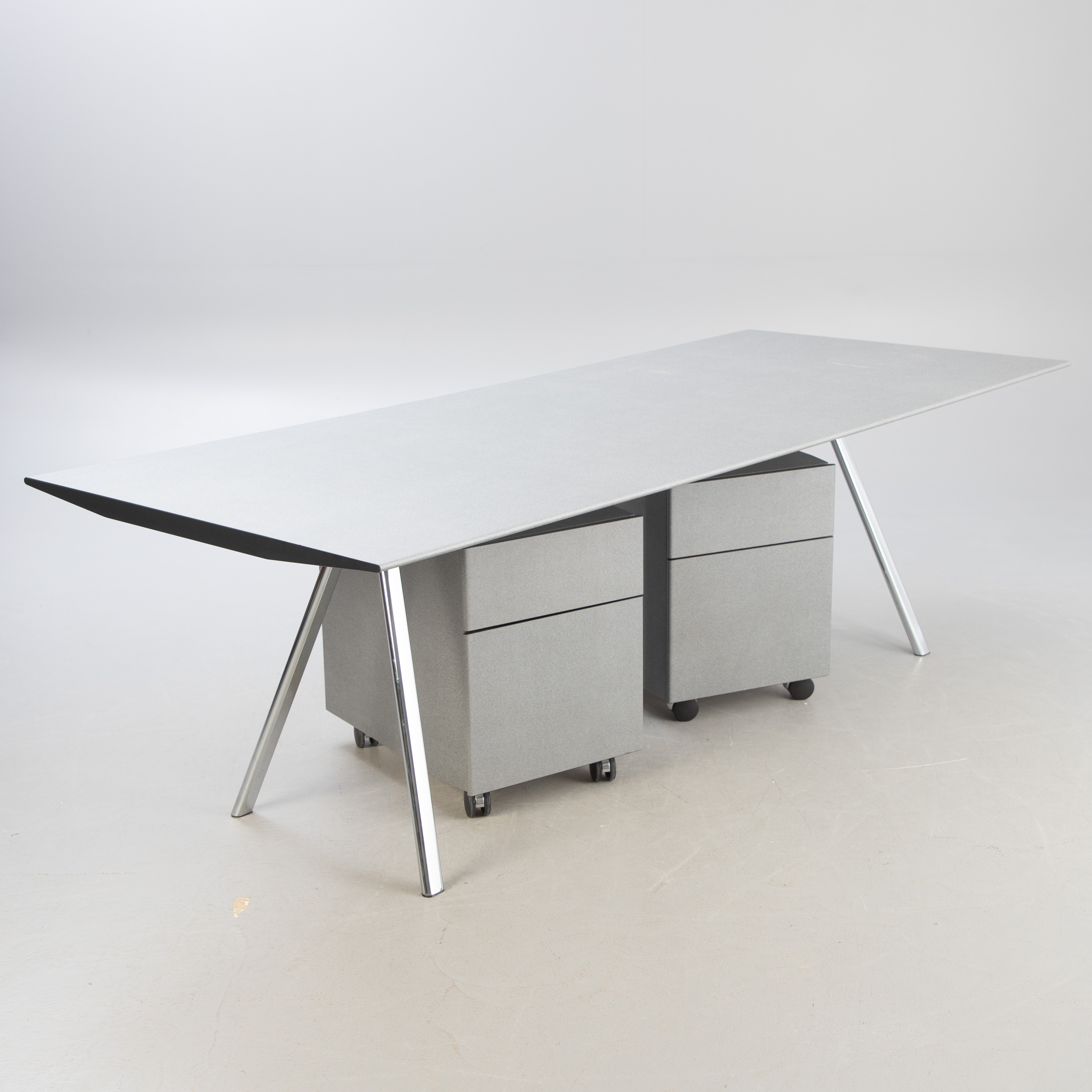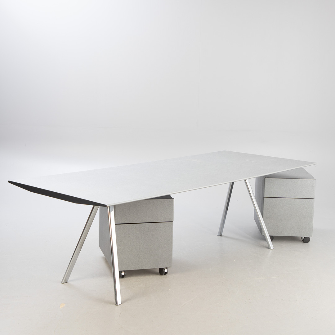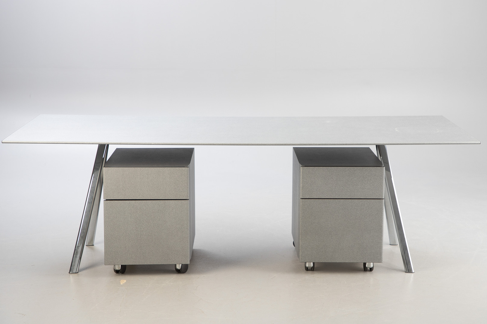 3440094. HANS EICHENBERGER. Tisch Wogg 7 mit 2 Rollcontainern.