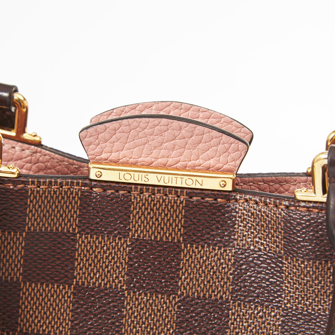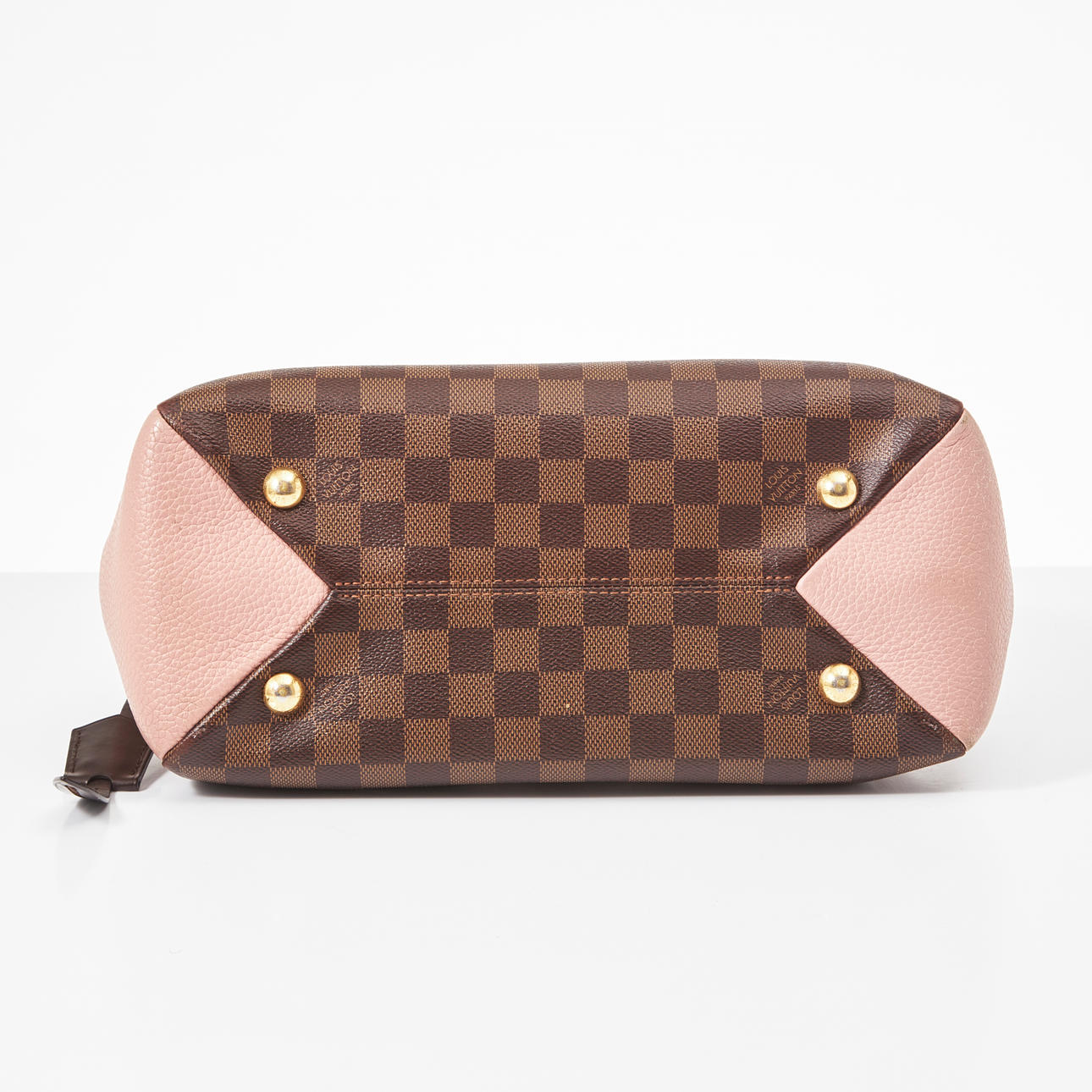 Tasche aus Damier Ebene Canvas mit gelben Metalldetails, oberem Henkel und abnehmbarem Schultergurt, Seiten und Futter in Rosa, Magnetverschluss. Aufschrift „LOUIS VUITTON PARIS made in France“, Datumscode SR 2158 France (2018), inklusive Staubbeutel, Karton und Beutel sowie Kaufbeleg, Maße ca. 34 x 22 x 15 cm.