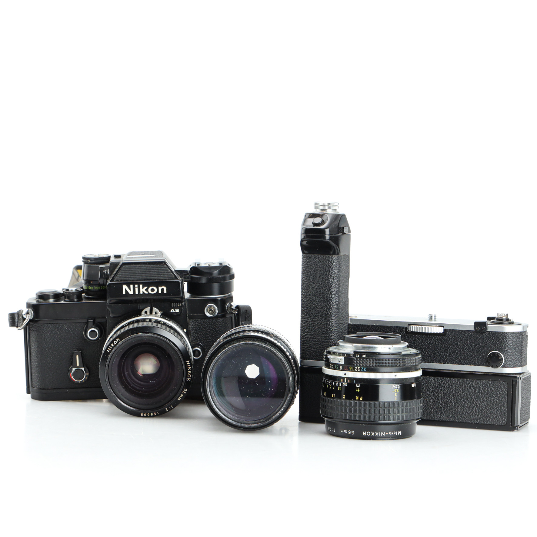 3443093. NIKON F2, Systemkamera, 3 Objektive.